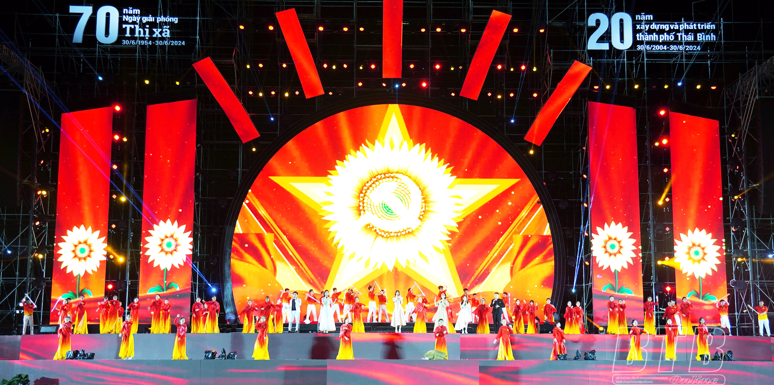 Lễ kỷ niệm được mở đầu bằng chương trình nghệ thuật “Trà Lý – dòng chảy khát vọng” với những hình ảnh, âm thanh, câu chuyện về dòng sông Trà Lý và con người Thái Bình. Chương trình nghệ thuật bao gồm 3 phân đoạn: Hào khí Bố Hải Khẩu, Khát vọng độc lập dân tộc và Chủ nghĩa xã hội, Khát vọng Thái Bình bừng sáng tương lai. Trong chương trình lễ kỷ niệm có lễ đón nhận Huân chương Độc lập hạng Nhì của Đảng bộ, chính quyền và nhân dân thành phố Thái Bình; chương trình trình diễn Drone Show - bức tranh ánh sáng tái hiện hành trình 70 năm giải phóng thị xã, 20 năm xây dựng và phát triển thành phố Thái Bình; chương trình nghệ thuật “Khát vọng tuổi 20”; pháo hoa nghệ thuật…