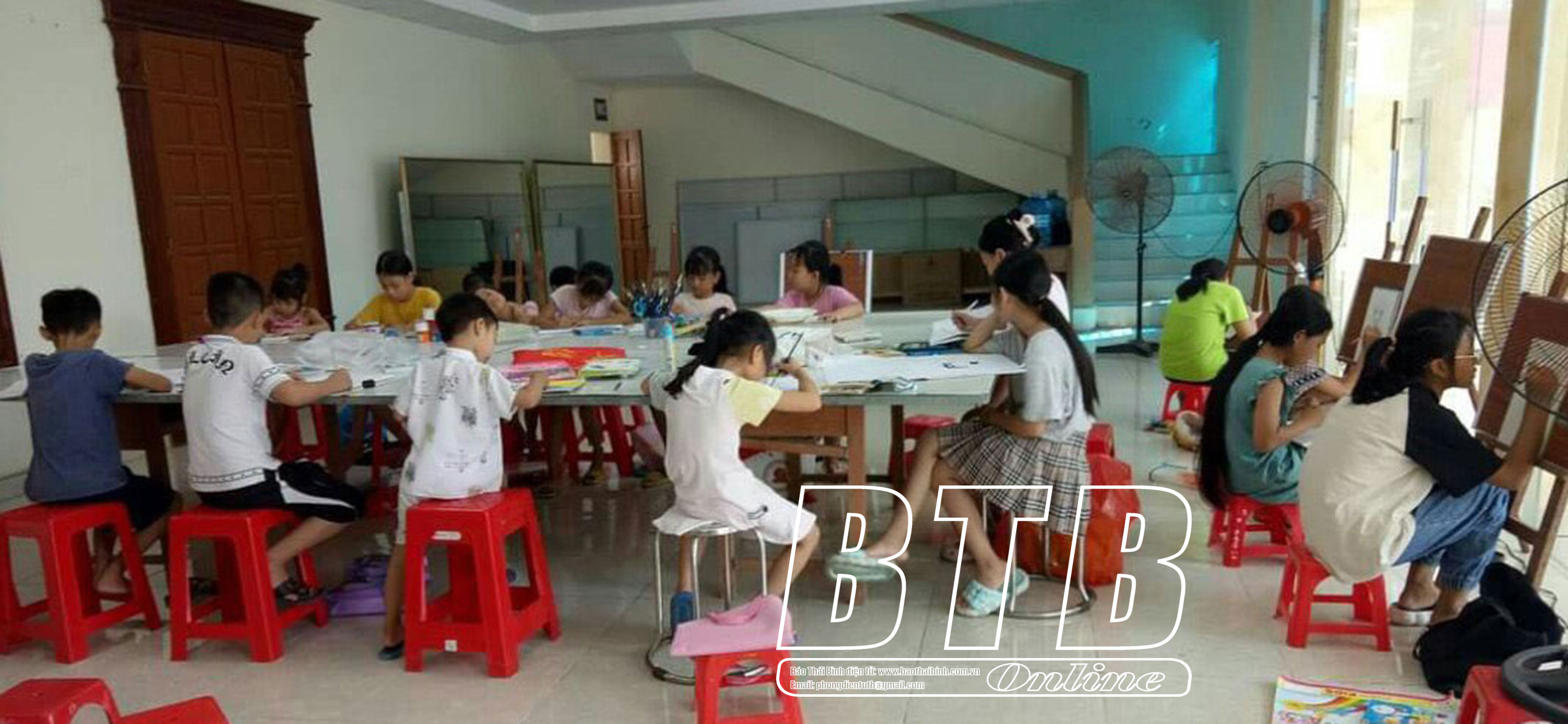Lớp năng khiếu hội họa được tổ chức tại Trung tâm Văn hóa, Thể thao huyện Quỳnh Phụ.