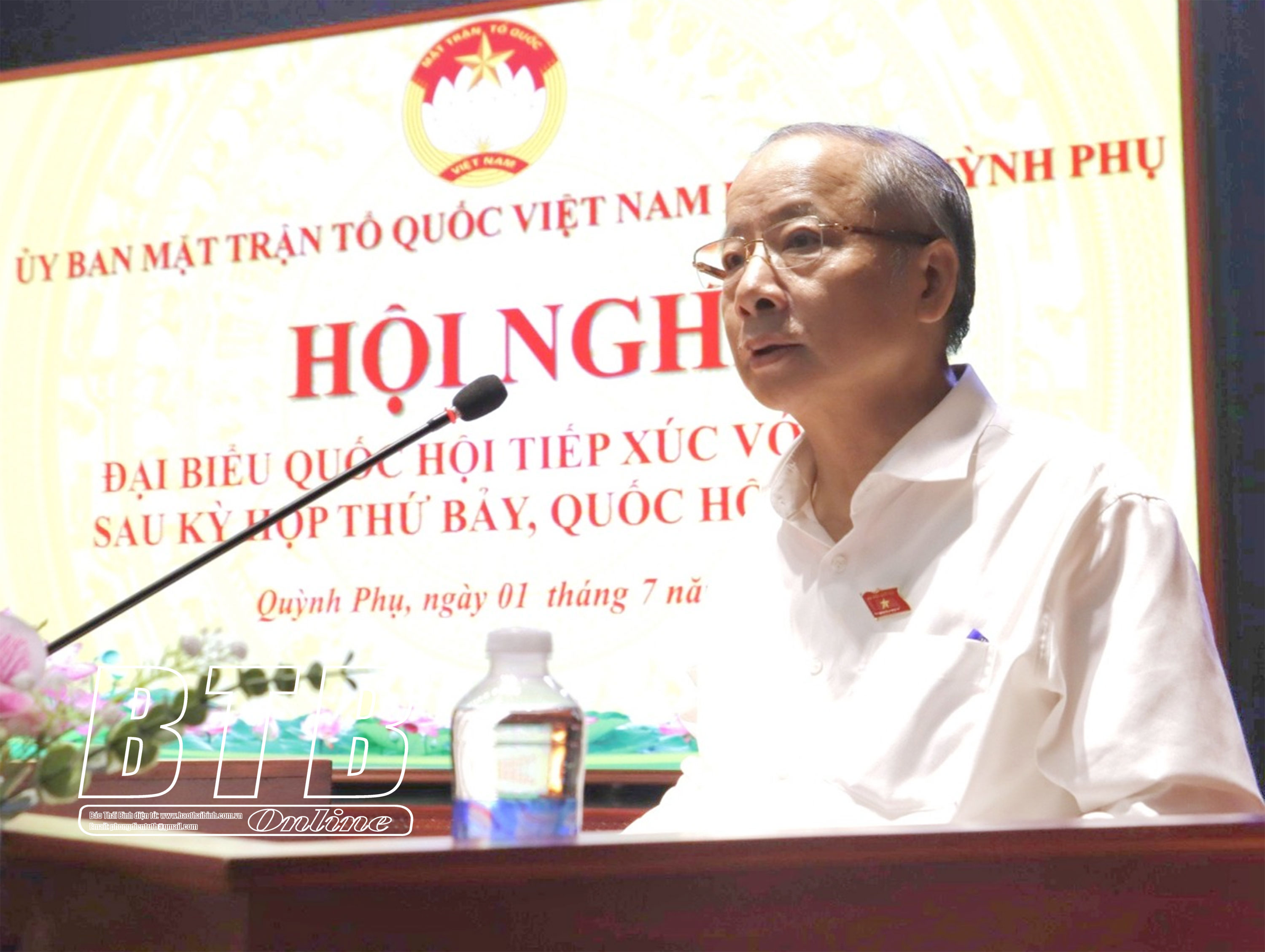 Ngày 1/7, các đại biểu: Ngô Đông Hải, Ủy viên Ban Chấp hành Trung ương Đảng, Bí thư Tỉnh ủy, Trưởng đoàn đại biểu Quốc hội tỉnh; Nguyễn Văn Thân, Chủ tịch Hiệp hội Doanh nghiệp nhỏ và vừa Việt Nam tiếp xúc với cử tri các huyện Quỳnh Phụ, Hưng Hà tại Trung tâm chính trị huyện Quỳnh Phụ và UBND xã Tây Đô (Hưng Hà).