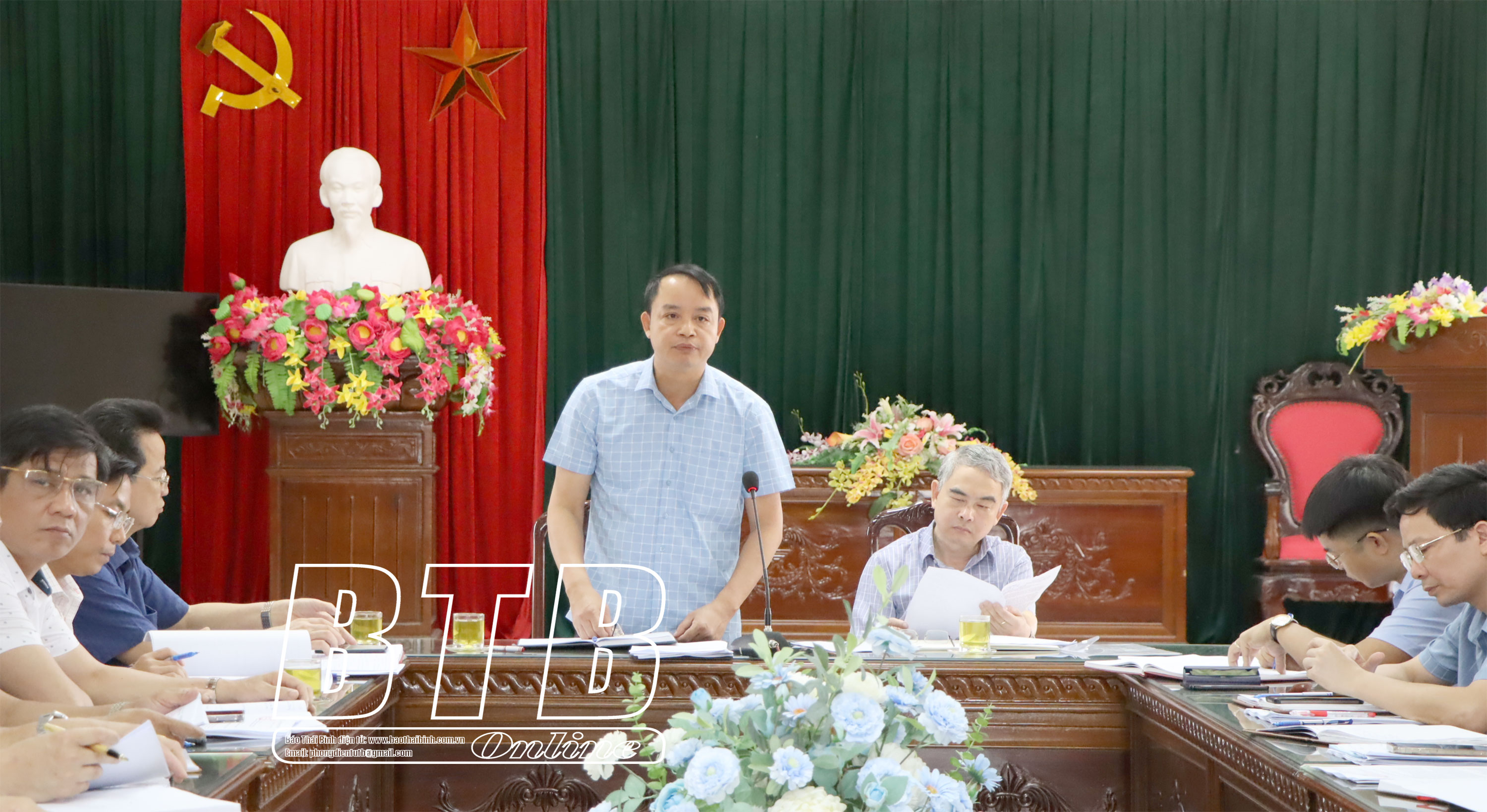 Lãnh đạo huyện Kiến Xương phát biểu tại cuộc họp.