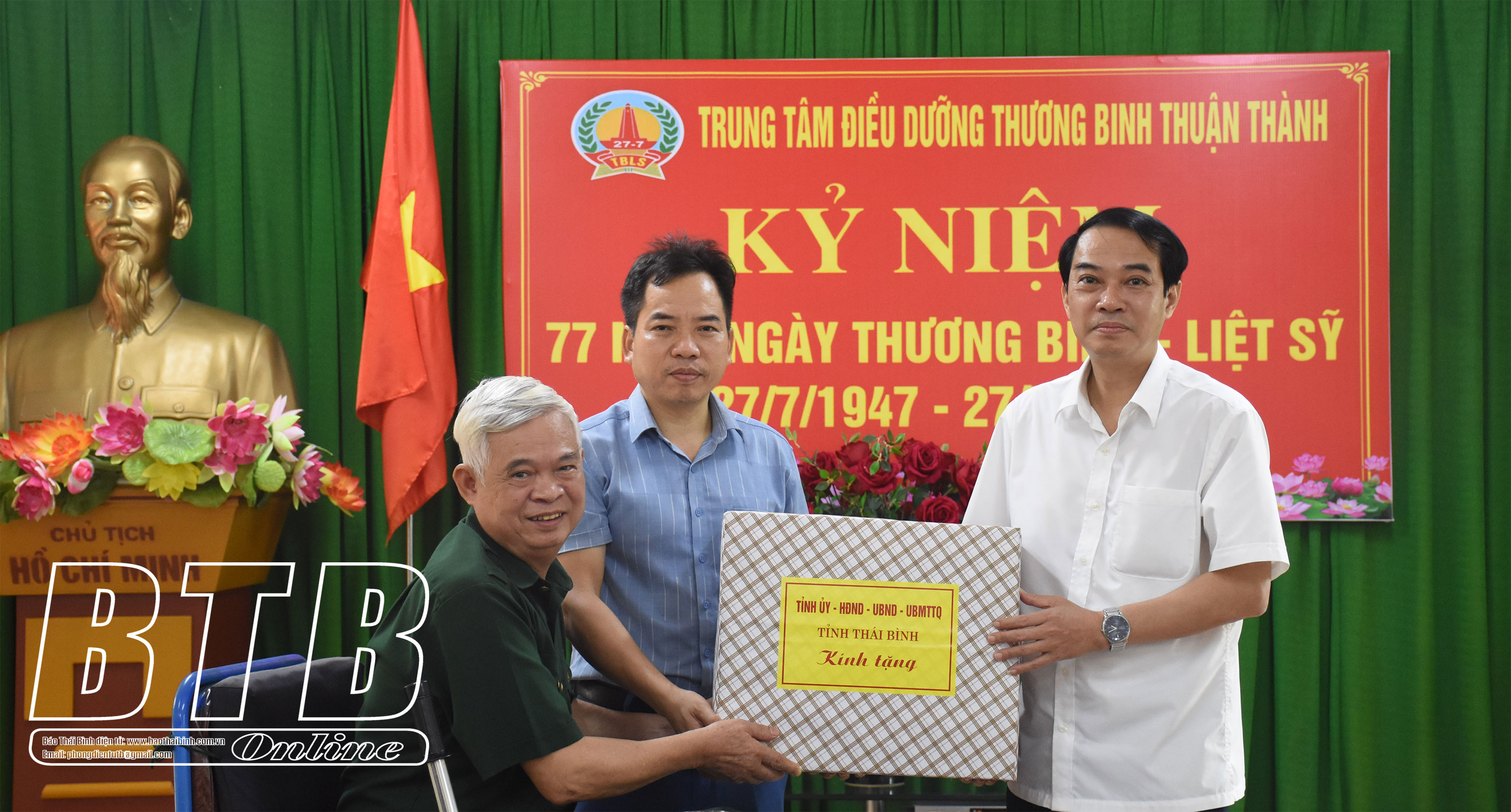Thăm hỏi và trao quà cho thương binh nặng người Thái Bình đang điều dưỡng tại Trung tâm Điều dưỡng thương binh Thuận Thành (Bắc Ninh).