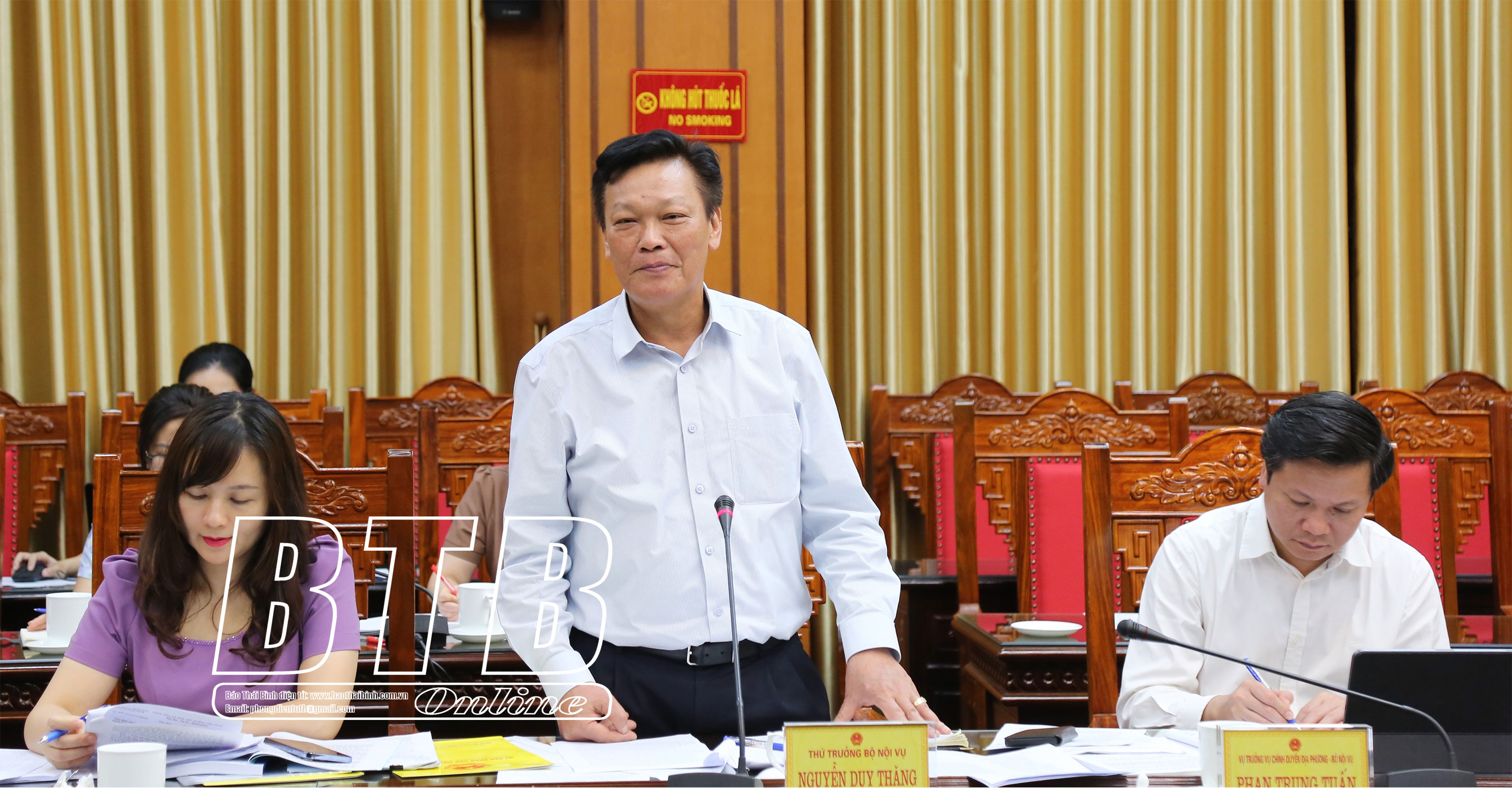 Đồng chí Nguyễn Duy Thăng, Thứ trưởng Bộ Nội vụ phát biểu tại buổi làm việc.