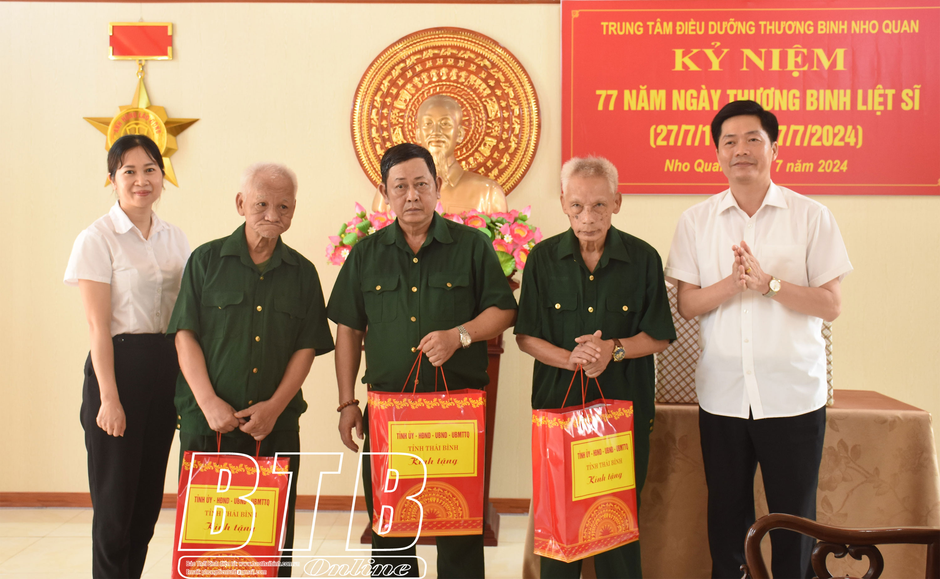 Trao quà cho các thương binh, bệnh binh người Thái Bình đang điều trị tại Trung tâm Điều dưỡng thương binh Nho Quan (Ninh Bình).