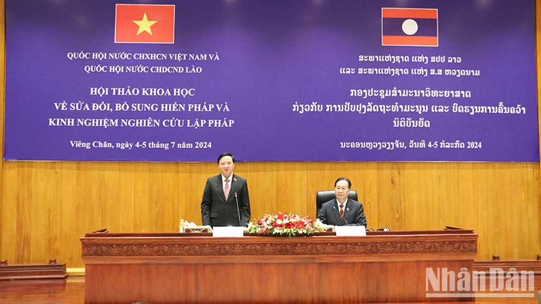 Trước đó, Phó Chủ tịch Quốc hội Nguyễn Khắc Định và Phó Chủ tịch Quốc hội Lào Chaleun Yiapaoher đã đồng chủ trì Hội thảo khoa học về kinh nghiệm nghiên cứu lập pháp.