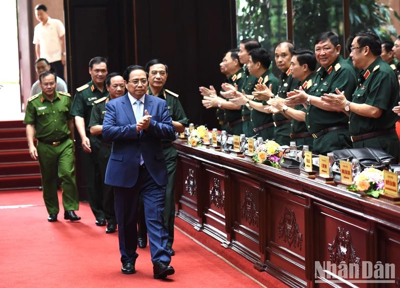 Thủ tướng Phạm Minh Chính tới dự và chỉ đạo Hội nghị Quân chính toàn quân 6 tháng đầu năm 2024. (Ảnh: TRẦN HẢI).