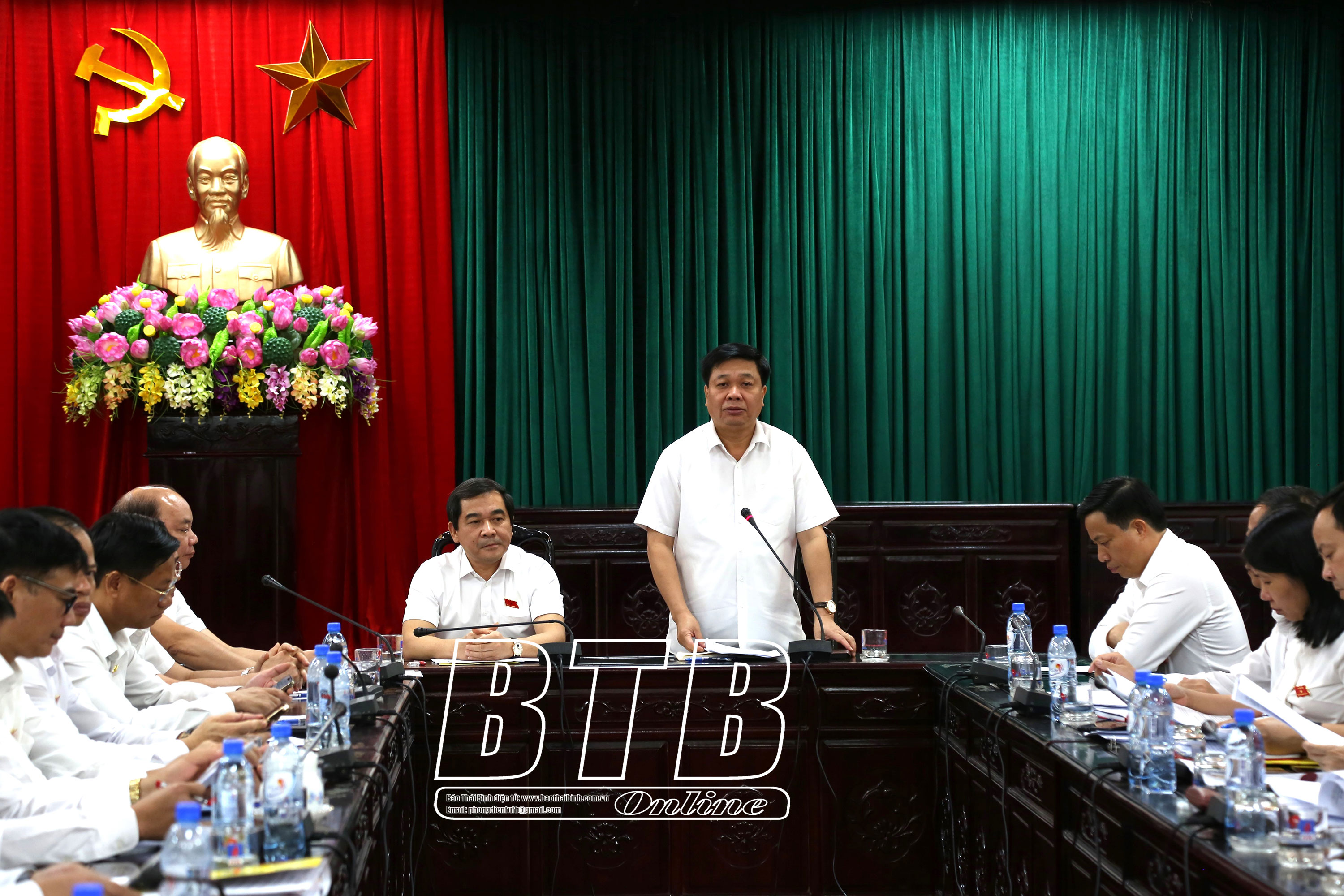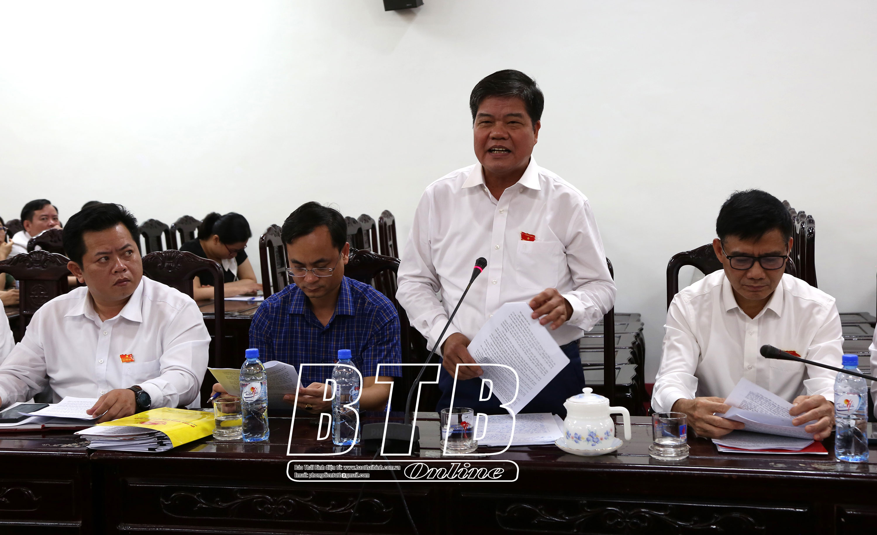 Đồng chí Đặng Thanh Giang, Ủy viên Ban Thường vụ Tỉnh ủy, Phó Chủ tịch thường trực HĐND tỉnh phát biểu tại cuộc họp thống nhất nội dung thảo luận tổ.Đồng chí Nguyễn Quang Hưng, Ủy viên Ban Thường vụ Tỉnh ủy, Phó Chủ tịch thường trực UBND tỉnh phát biểu tại cuộc họp thống nhất nội dung thảo luận tổ.Đồng chí Lại Văn Hoàn, Tỉnh ủy viên, Phó Chủ tịch UBND tỉnh phát biểu tại cuộc họp thống nhất nội dung thảo luận tổ.