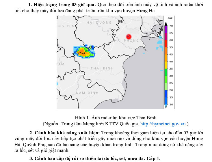 - Tin cảnh báo dông, lốc, sét, mưa đá và mưa lớn cục bộ tại Thái Bình 19.09.2024 | 14:02 PM