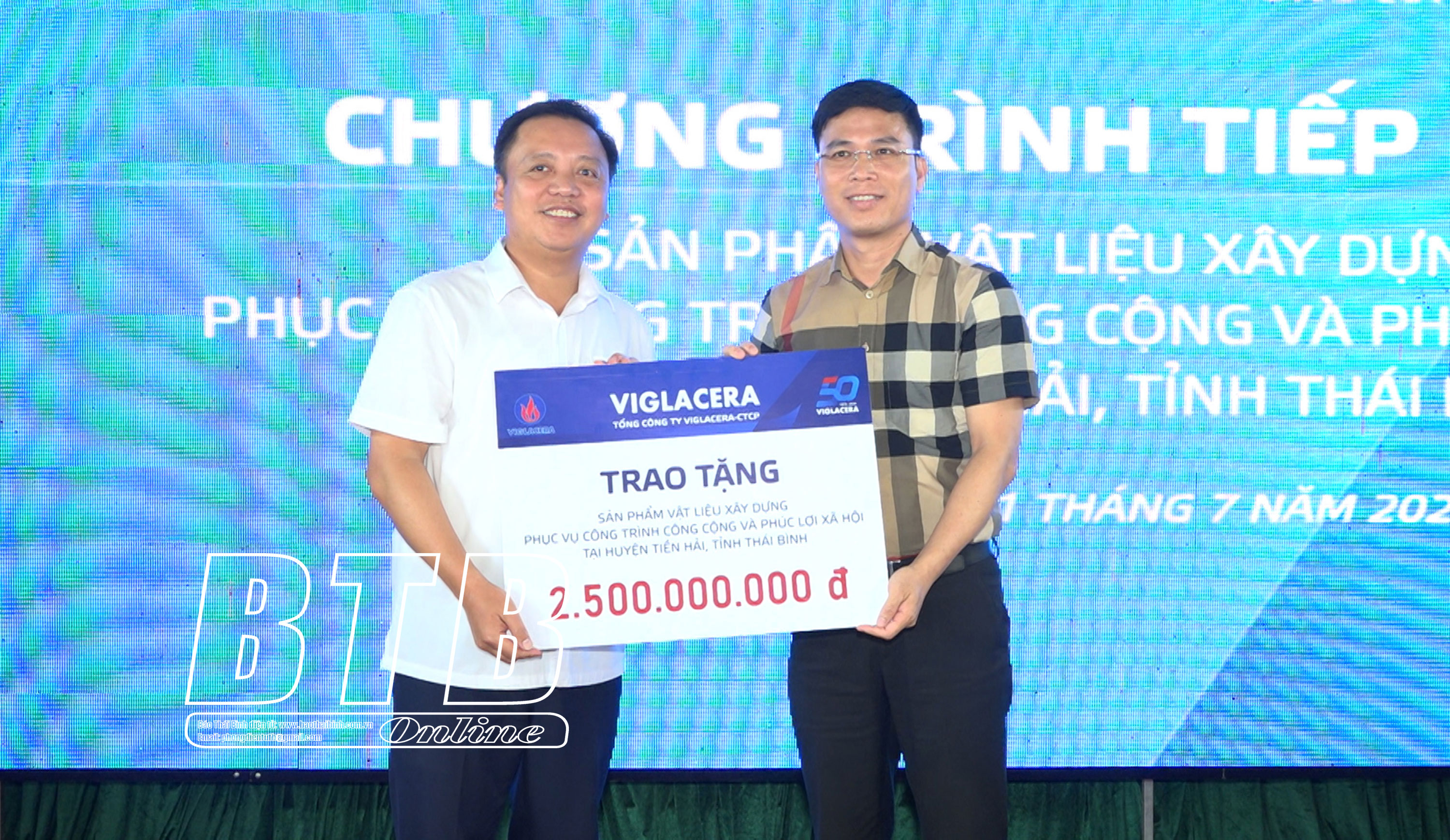 Chương trình tặng sản phẩm vật liệu xây dựng tại huyện Tiền Hải nằm trong gói tài trợ của Tổng công ty Viglacera-CTCP nhân dịp kỷ niệm 50 năm ngày thành lập Tổng công ty. Gói tài trợ này có tổng trị giá 50 tỷ đồng bằng các loại vật liệu xây dựng như gạch ốp lát, sứ vệ sinh, sen vòi, kính xây dựng cho các địa phương đang gặp khó khăn.