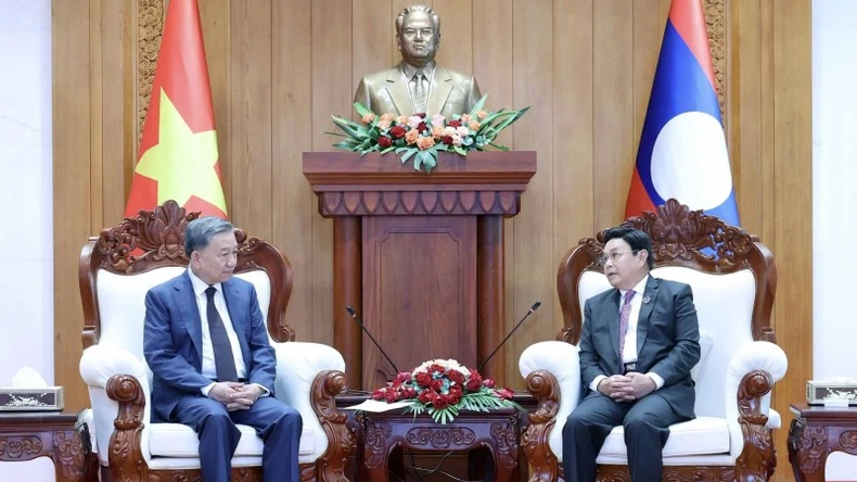 Chủ tịch nước Tô Lâm bày tỏ vui mừng sang thăm đất nước Lào anh em và gặp lại Chủ tịch Quốc hội Xaysomphone Phomvihane, người đồng chí, anh em thân thiết của Việt Nam; cảm ơn những tình cảm tốt đẹp, quý báu của Đảng, Nhà nước và nhân dân Lào luôn dành cho Việt Nam từ trước tới nay. Chủ tịch nước Tô Lâm chuyển lời thăm hỏi thân thiết, của Chủ tịch Quốc hội Trần Thanh Mẫn và lãnh đạo cấp cao Việt Nam tới đồng chí Xaysomphone Phomvihane.