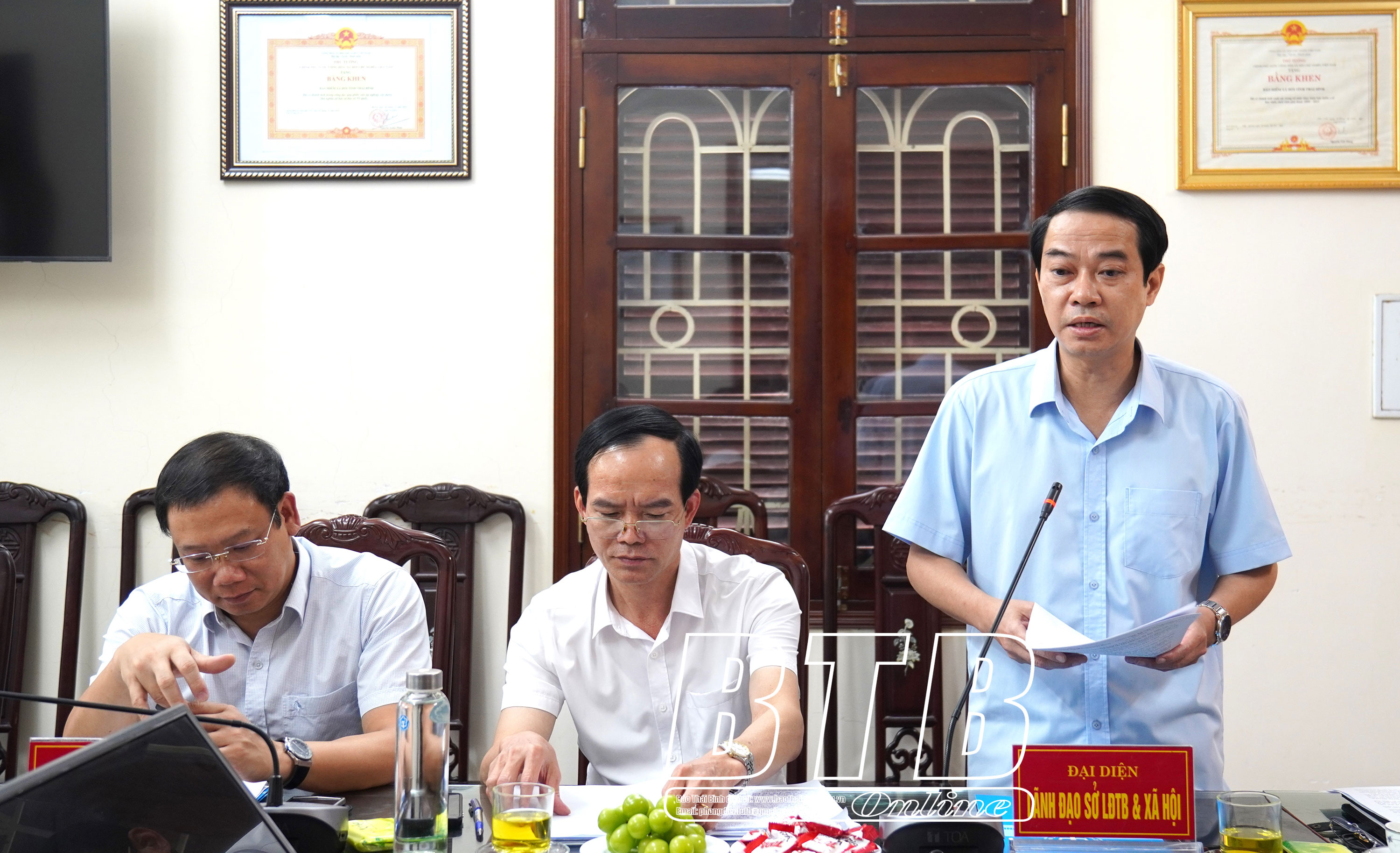 Lãnh đạo Sở Lao động - Thương binh và Xã hội phát biểu tại cuộc họp.