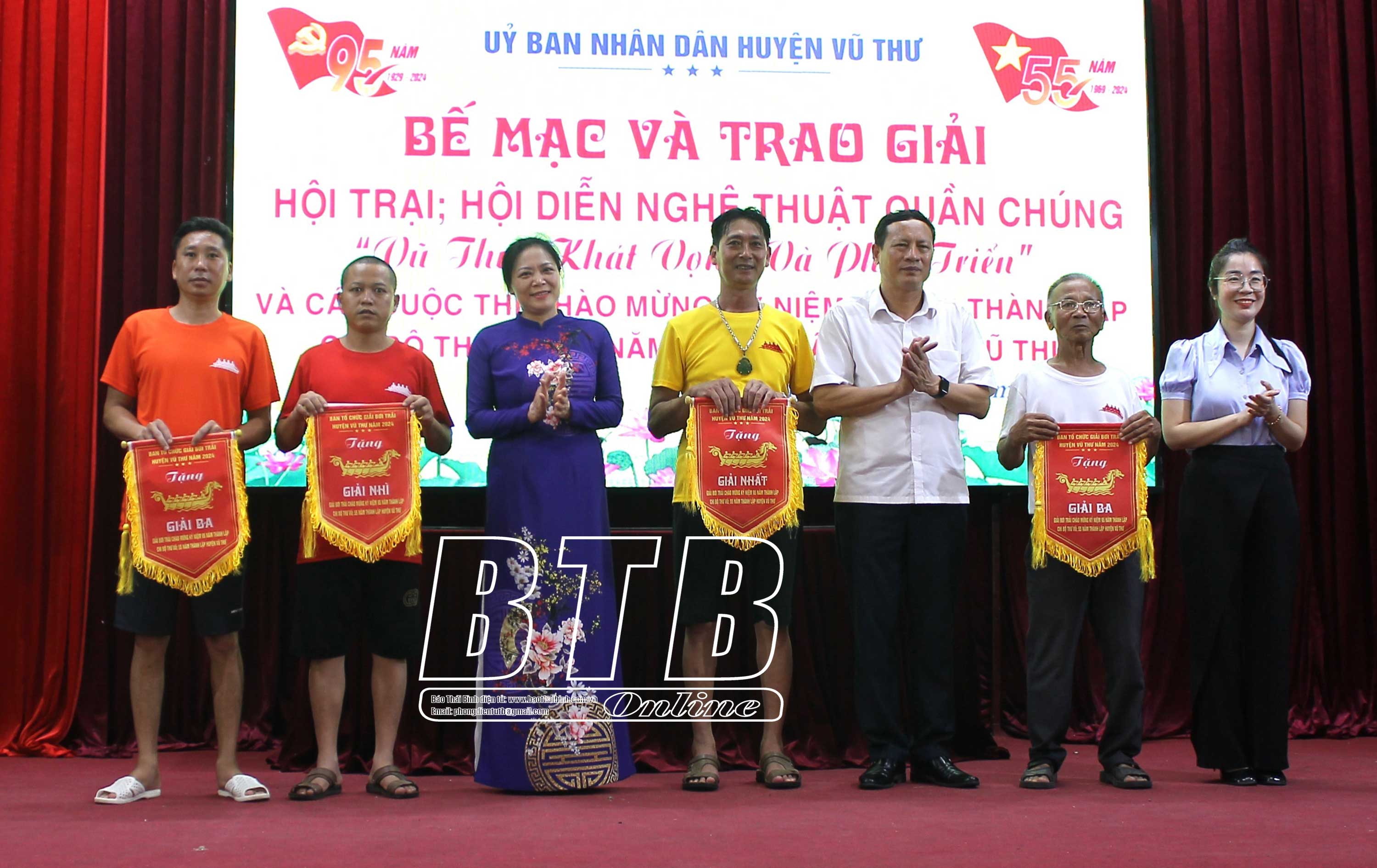 Hội thi bơi trải thu hút 60 vận động viên của 4 đội tham gia; trong đó đội bơi trải Thư Vũ 3 giành giải nhất. Hội trại “Vũ Thư khát vọng và phát triển” thu hút 30 xã, thị trấn trong huyện tham gia, trong đó ban tổ chức trao giải nhất cho xã Tân Lập; giải nhì cho xã Nguyên Xá và Tân Hòa; giải ba và khuyến khích cho 9 xã. Hội thi văn nghệ quần chúng “Vũ Thư khát vọng và phát triển” cũng thu hút 30 xã, thị trấn trong huyện tham gia, trong đó ban tổ chức trao giải nhất cho xã Tân Hòa; giải nhì cho xã Tân Lập và Tân Phong; 9 xã đạt giải ba, giải khuyến khích. Tại hội thi nấu ăn gắn với lễ hội bánh và ẩm thực huyện Vũ Thư, đầu bếp Đặng Đình Mạnh, Hội đầu bếp Hoàng Gia Việt Nam đạt giải đầu bếp xuất sắc nhất.