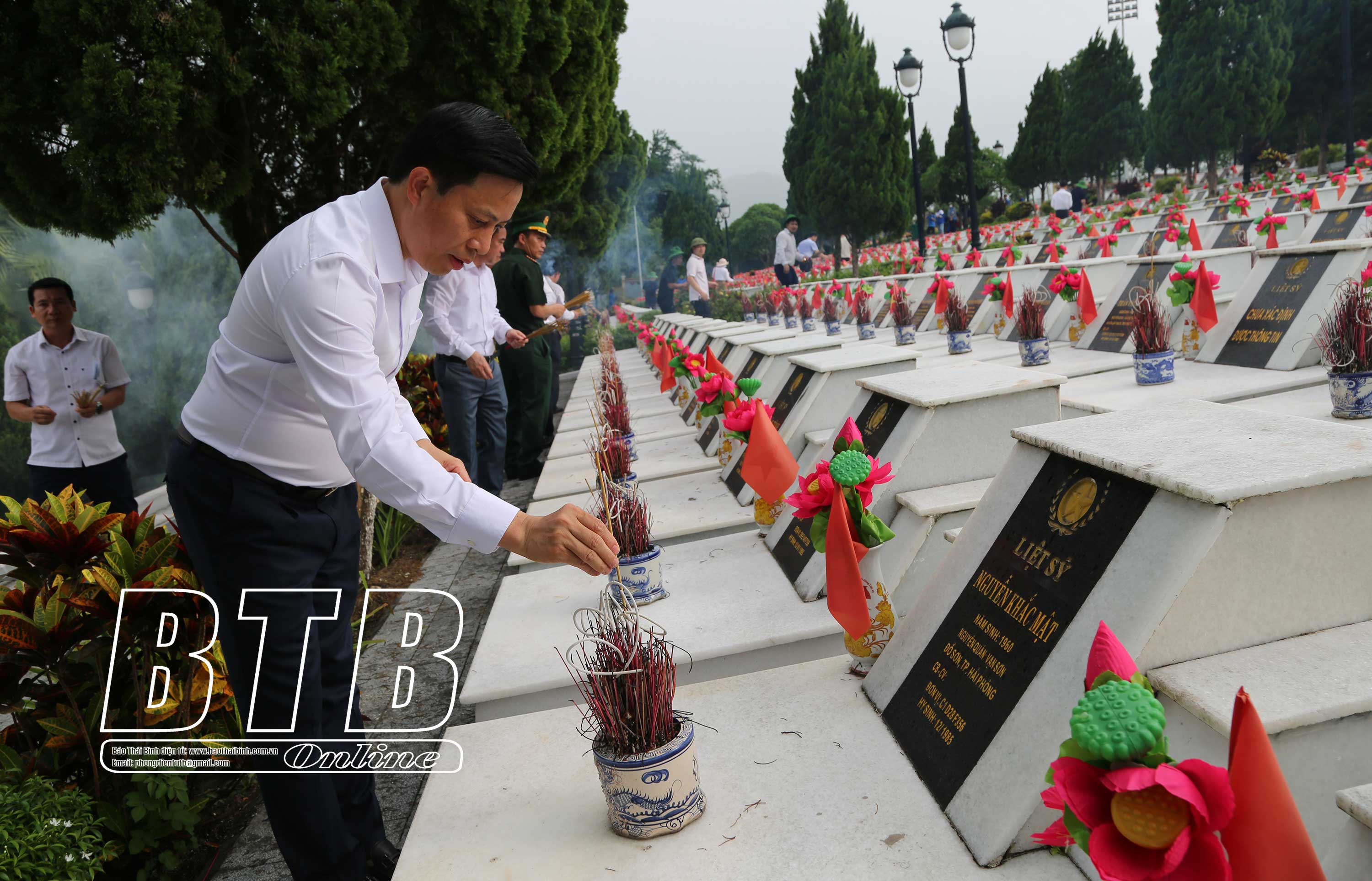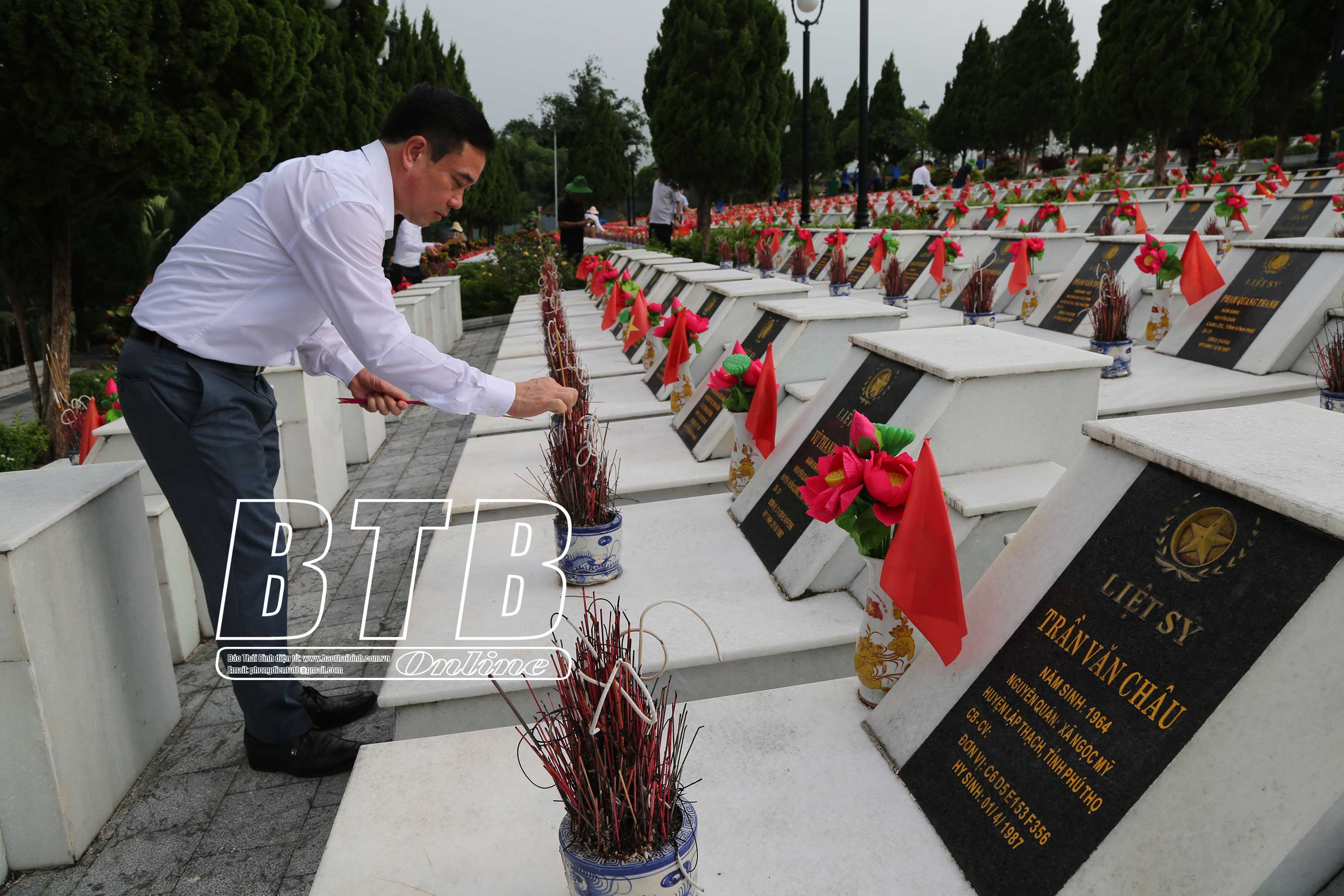 Trong không khí trang nghiêm, đoàn đại biểu tỉnh Thái Bình đã đặt vòng hoa của Tỉnh ủy, HĐND, UBND, Ủy ban MTTQ tỉnh Thái Bình, thành kính dâng hương, dành một phút mặc niệm tưởng nhớ các anh hùng liệt sĩ đã ngã xuống vì nền độc lập, tự do của dân tộc. Các thành viên trong đoàn đã thắp hương tại Nghĩa trang Liệt sĩ quốc gia Vị Xuyên, Đài tưởng niệm, Đền thờ Liệt sĩ và trên từng phần mộ, bày tỏ lòng tri ân sâu sắc các anh hùng liệt sĩ.