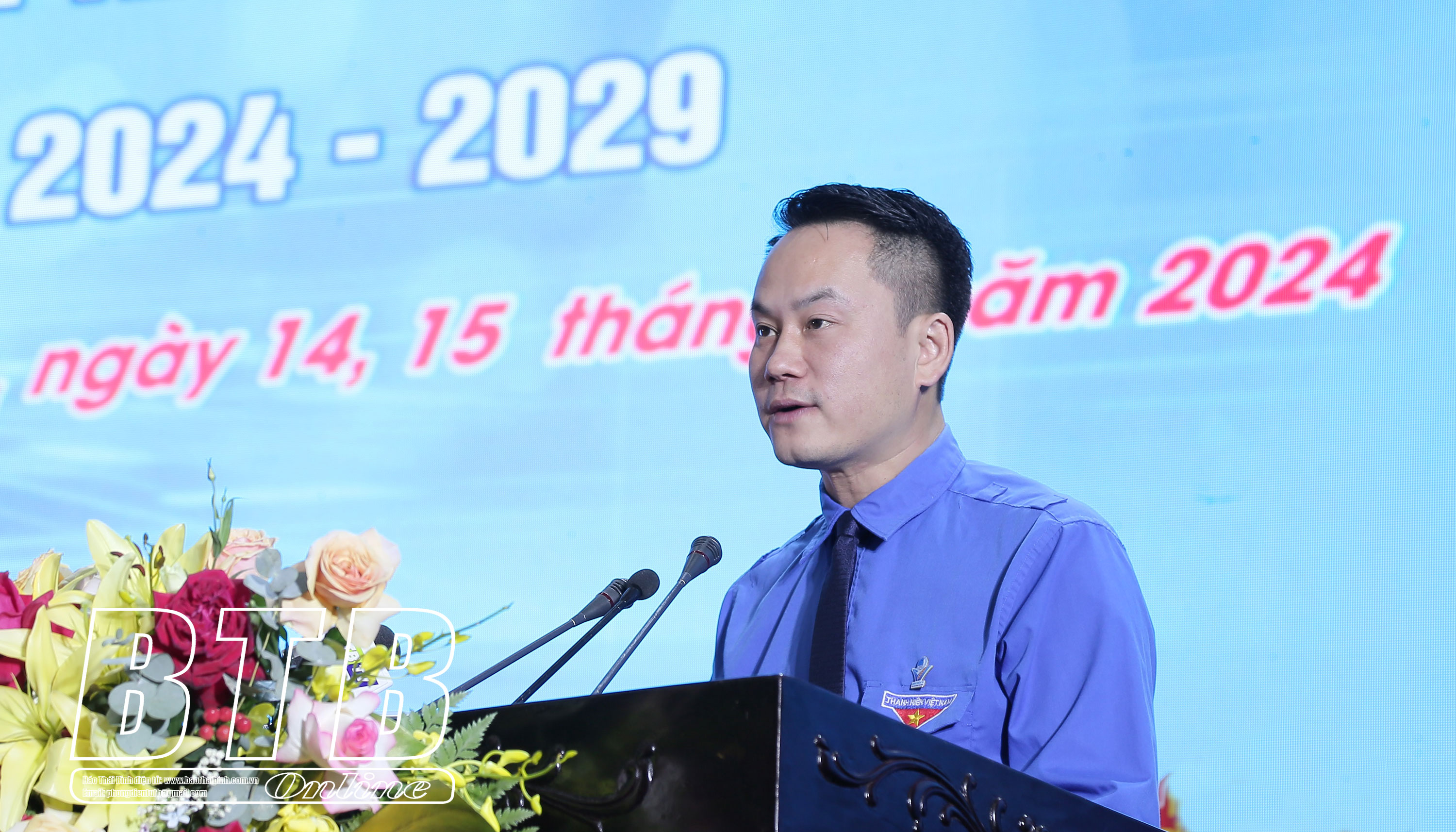 Anh Thiệu Minh Quỳnh, Bí thư Tỉnh đoàn, Chủ tịch Hội LHTN tỉnh khóa IV, tái đắc cử Chủ tịch Hội LHTN tỉnh Thái Bình khóa V, nhiệm kỳ 2024 - 2029.