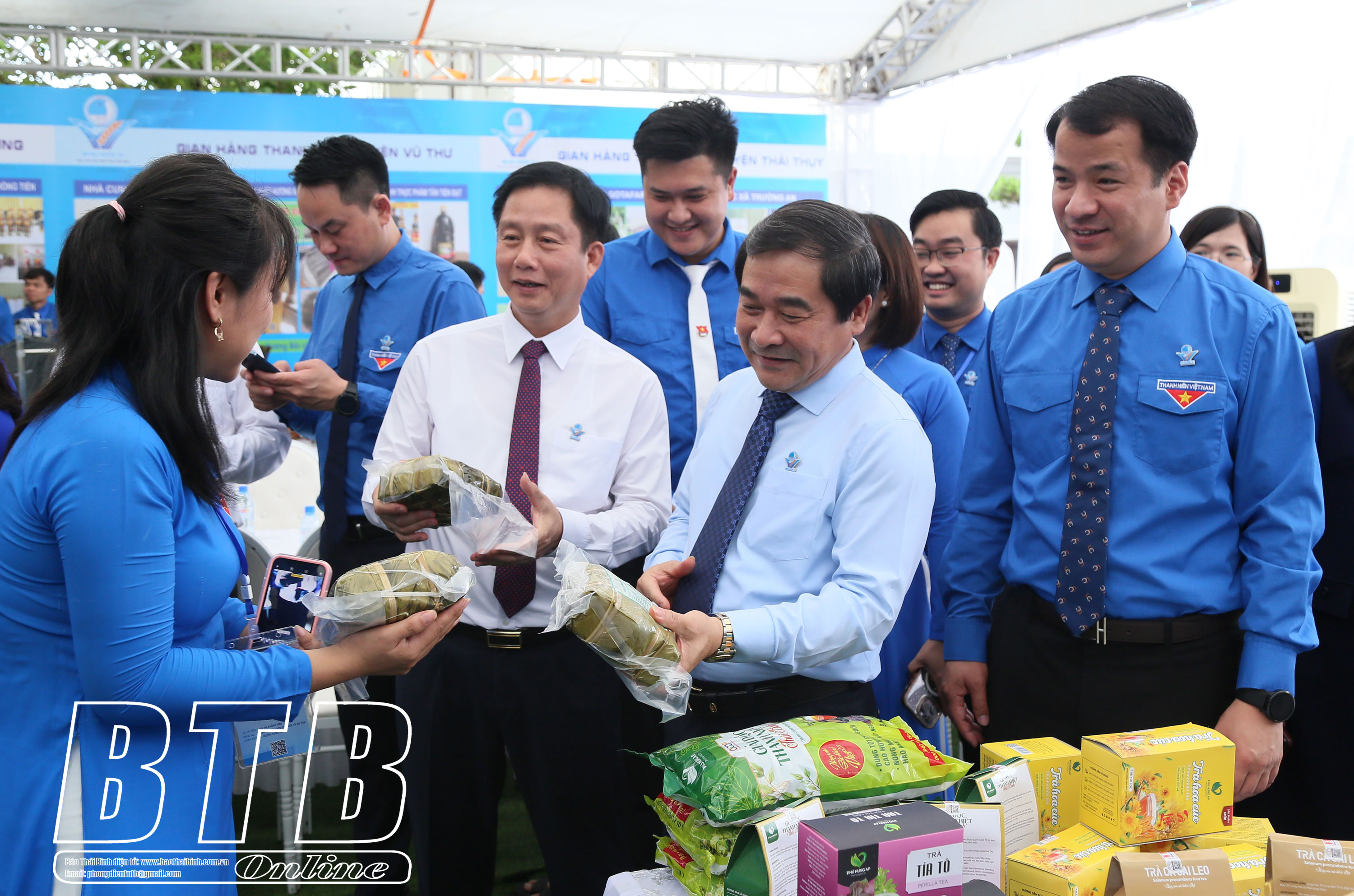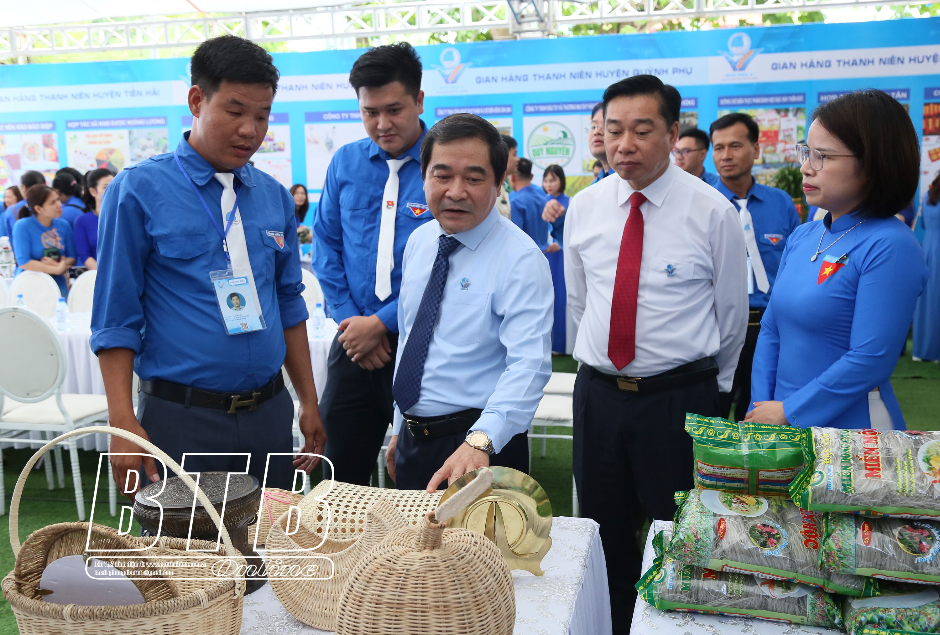 Các đồng chí lãnh đạo Trung ương Đoàn, Trung ương Hội Liên hiệp Thanh niên Việt Nam và các đồng chí lãnh đạo tỉnh tham quan triển lãm thanh niên phát triển kinh tế. Các đồng chí lãnh đạo tỉnh và đại biểu tham quan triển lãm thanh niên phát triển kinh tế.
