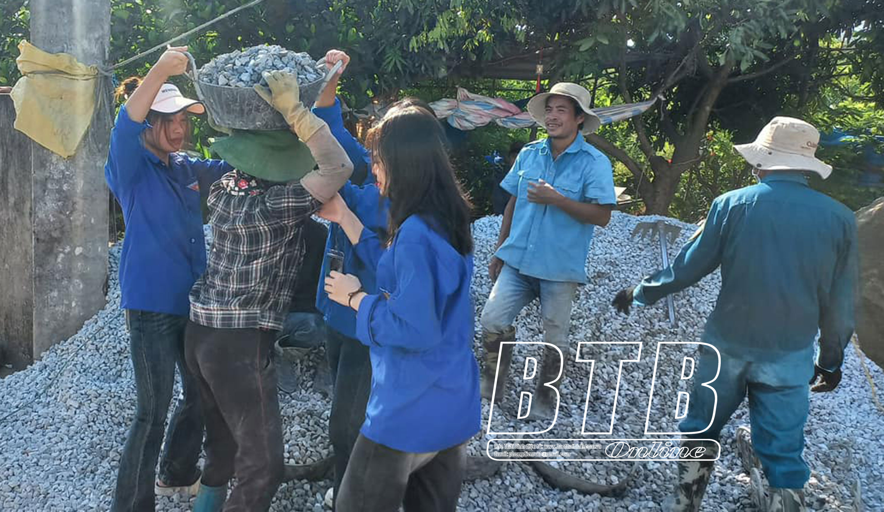 Thanh niên xã Đông Long (Tiền Hải) hỗ trợ ngày công vận chuyển vật liệu xây nhà cho gia đình cựu thanh niên xung phong.