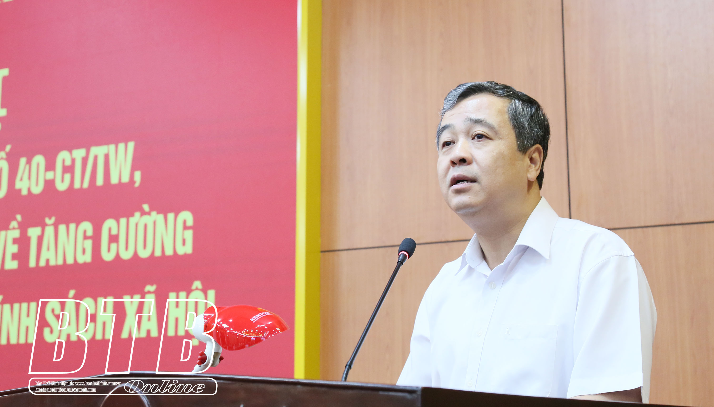 Trong bối cảnh Thái Bình đang đẩy mạnh triển khai các giải pháp hoàn thành tốt các mục tiêu, nhiệm vụ Nghị quyết Đại hội Đảng bộ tỉnh lần thứ XX và nghị quyết đại hội đảng các cấp đã đề ra, đồng thời chuẩn bị tâm thế bước vào giai đoạn phát triển mới, đồng chí Bí thư Tỉnh ủy yêu cầu các cấp ủy đảng và toàn hệ thống chính trị trong tỉnh nhận thức đầy đủ, rõ ràng hơn về mục đích, ý nghĩa, yêu cầu đối với nguồn vốn tín dụng chính sách xã hội và các chủ trương liên quan; tiếp tục triển khai thực hiện tốt hơn Chỉ thị số 40-CT/TW, trong đó cấp ủy, chính quyền các cấp thường xuyên quan tâm lãnh đạo, chỉ đạo đưa nội dung, kết quả thực hiện vào chương trình công tác hàng tháng, quý, năm, trên cơ sở đó đánh giá đúng thực chất đồng thời có các chủ trương, biện pháp phù hợp, kịp thời đối với hoạt động tín dụng chính sách; quan tâm bổ sung nguồn vốn ủy thác sang Ngân hàng CSXH để cho vay người nghèo và các đối tượng chính sách trên địa bàn.