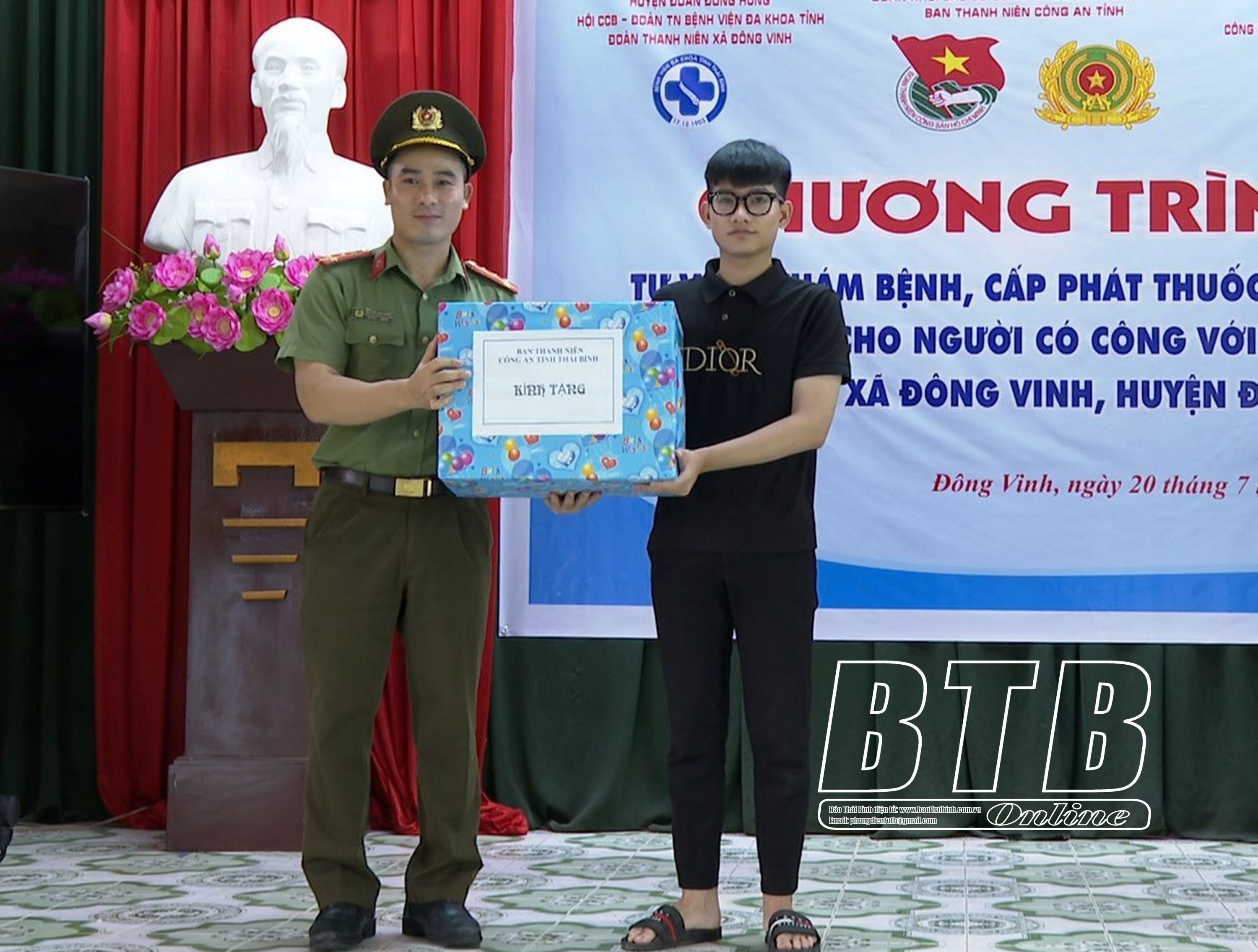 Sáng ngày 20/7, Đoàn Thanh niên Khối Các cơ quan và Doanh nghiệp tỉnh, Ban Thanh niên Công an tỉnh, Bệnh viện Đa khoa tỉnh, Công ty Cổ phần Phát triển quốc tế TTT MAX tổ chức chương trình khám bệnh, cấp thuốc miễn phí và tặng quà cho người có công, các đối tượng chính sách, người có hoàn cảnh khó khăn tại xã Đông Vinh (Đông Hưng).