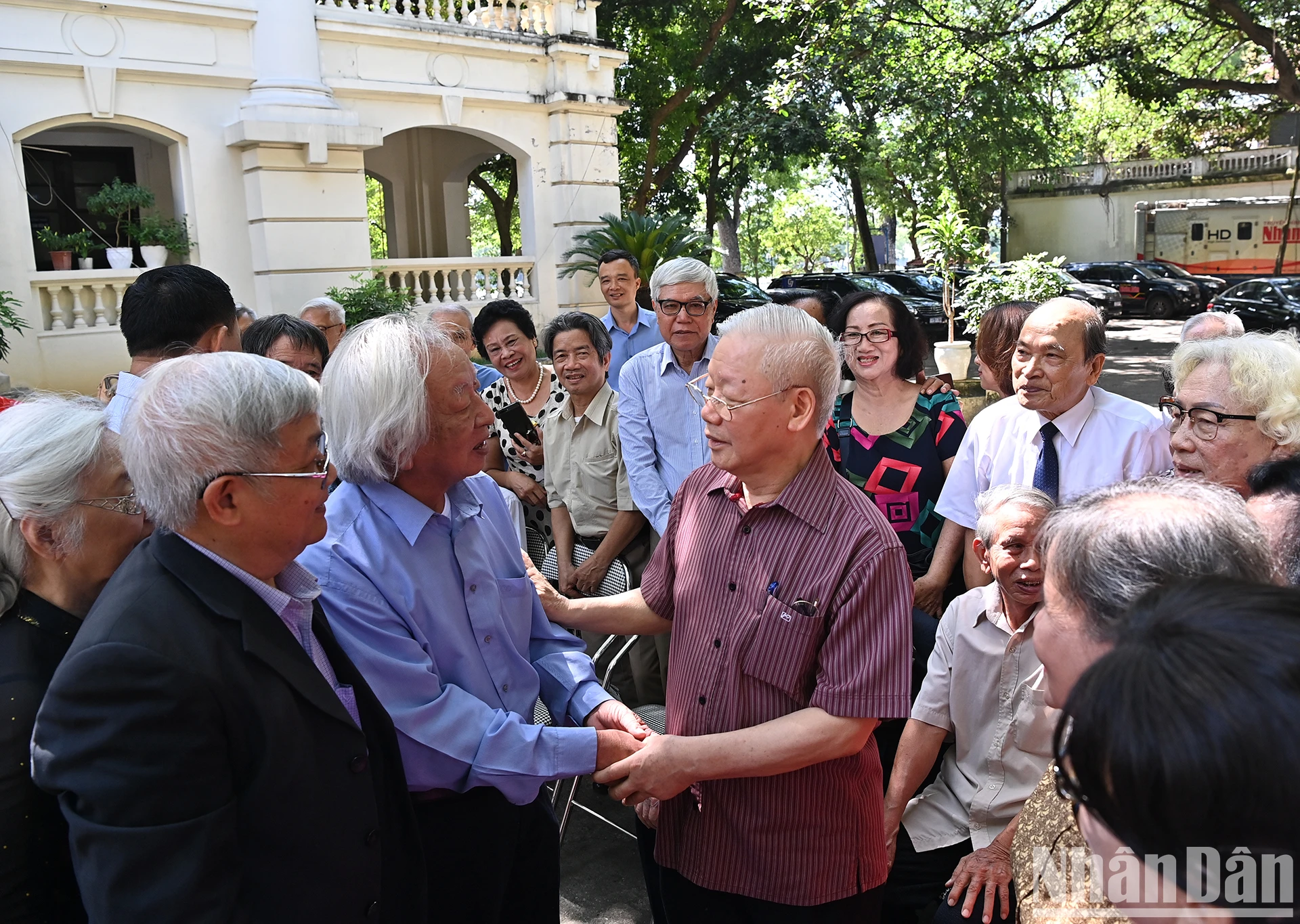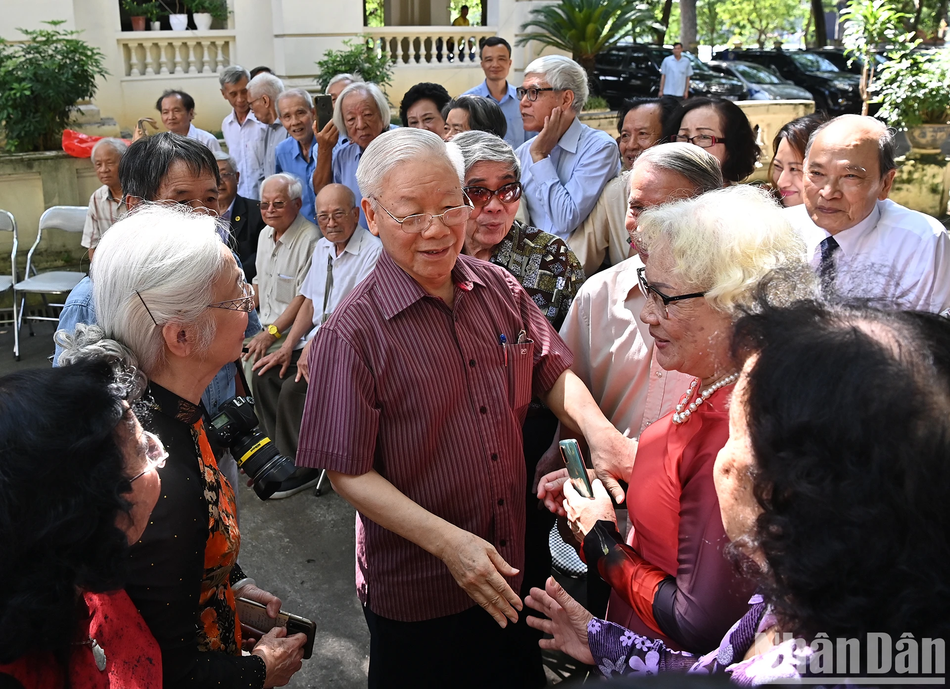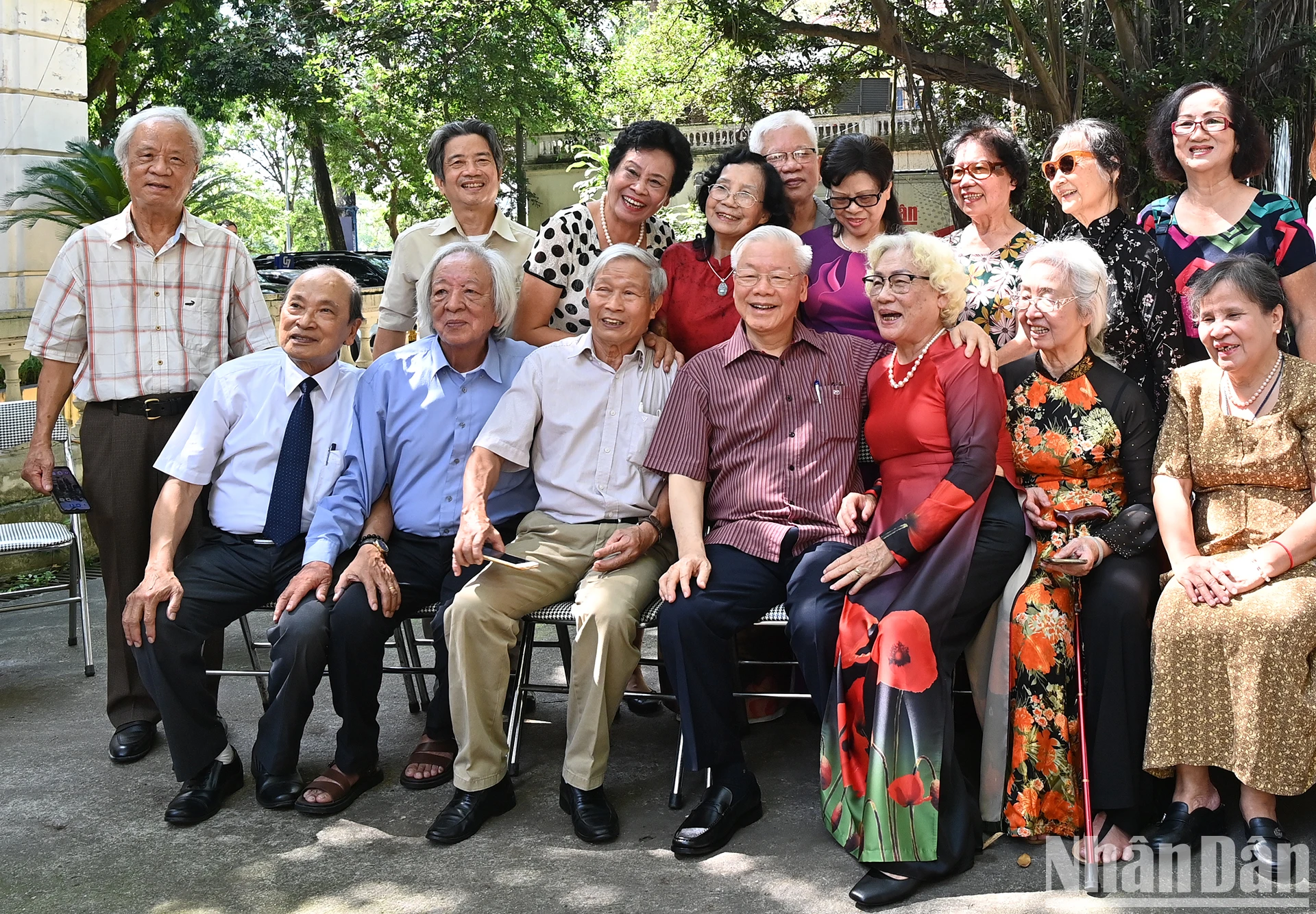Tổng Bí thư Nguyễn Phú Trọng luôn giản dị, thân thương khi ở bên thầy cô và bạn bè.