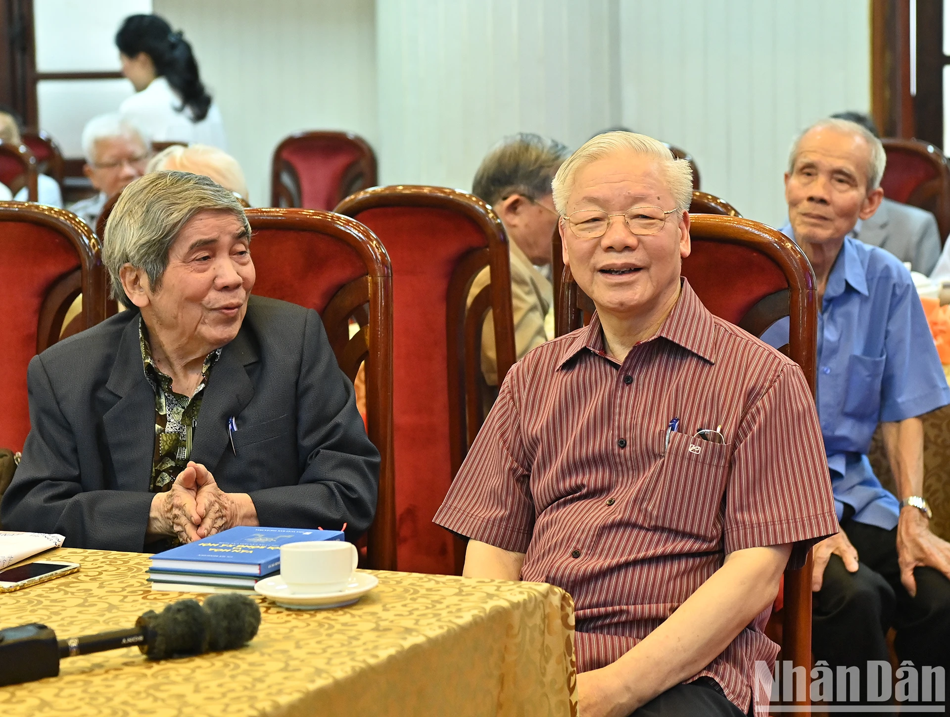 Tổng Bí thư Nguyễn Phú Trọng và Giáo sư Hà Minh Đức tại buổi gặp mặt.