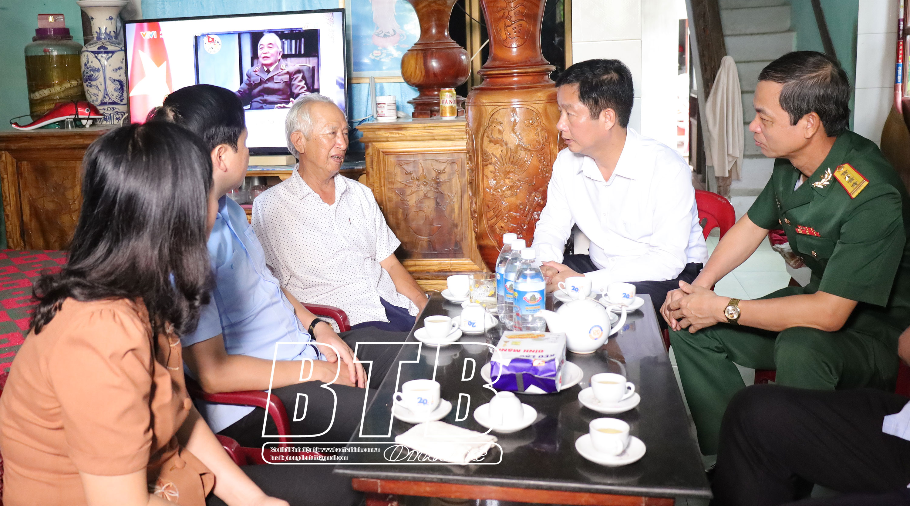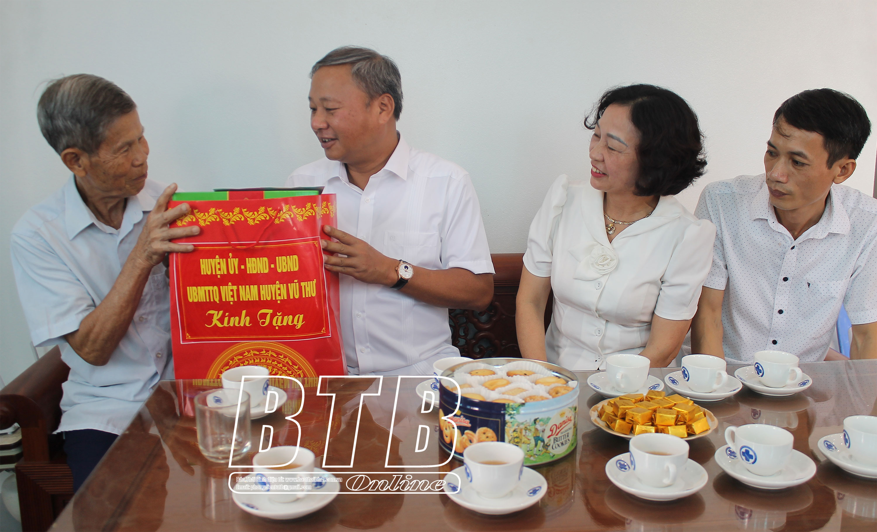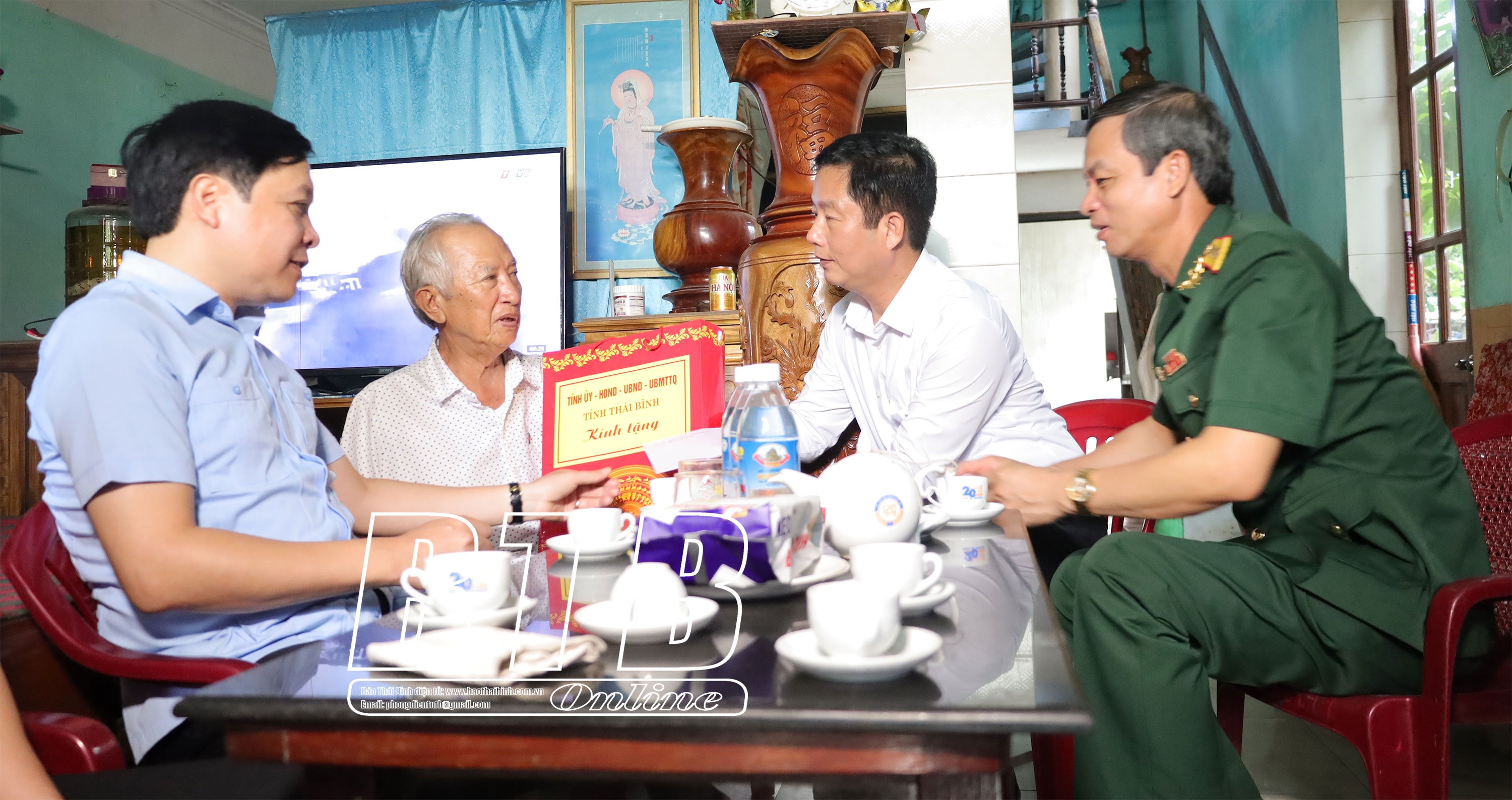 Các đồng chí: Nguyễn Quang Hưng, Ủy viên Ban Thường vụ Tỉnh ủy, Phó Chủ tịch thường trực UBND tỉnh; Vũ Kim Cứ, Ủy viên Ban Thường vụ Tỉnh ủy, Trưởng ban quản lý Khu kinh tế và các khu công nghiệp tỉnh; Vũ Ngọc Trì, Tỉnh ủy viên, Phó Chủ tịch HĐND tỉnh; lãnh đạo Hội Cựu chiến binh tỉnh, huyện Thái Thụy đã tới thăm, tặng quà gia đình chính sách, người có công trên địa bàn huyện Thái Thụy.