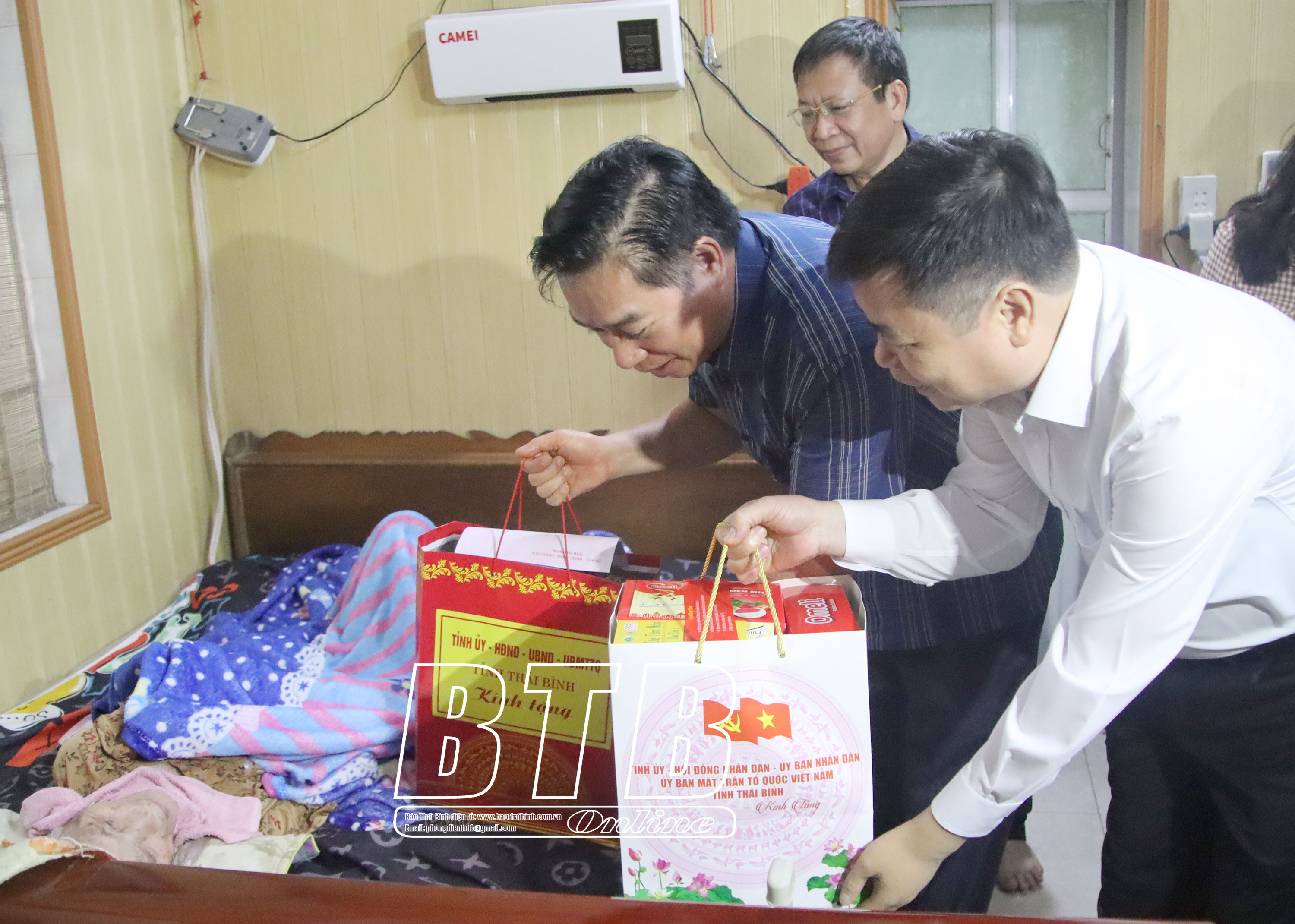 Các đồng chí: Đặng Thanh Giang, Ủy viên Ban Thường vụ Tỉnh ủy, Phó Chủ tịch thường trực HĐND tỉnh; Lại Văn Hoàn, Tỉnh ủy viên, Phó Chủ tịch UBND tỉnh, lãnh đạo Sở Lao động - Thương binh và Xã hội, Huyện ủy Vũ Thư tới thăm, tặng quà các gia đình chính sách tại xã Dũng Nghĩa (Vũ Thư) và thương binh, bệnh binh nặng tại Trung tâm Nuôi dưỡng và Điều dưỡng người có công tỉnh (cơ sở 2, xã Minh Quang, huyện Vũ Thư).