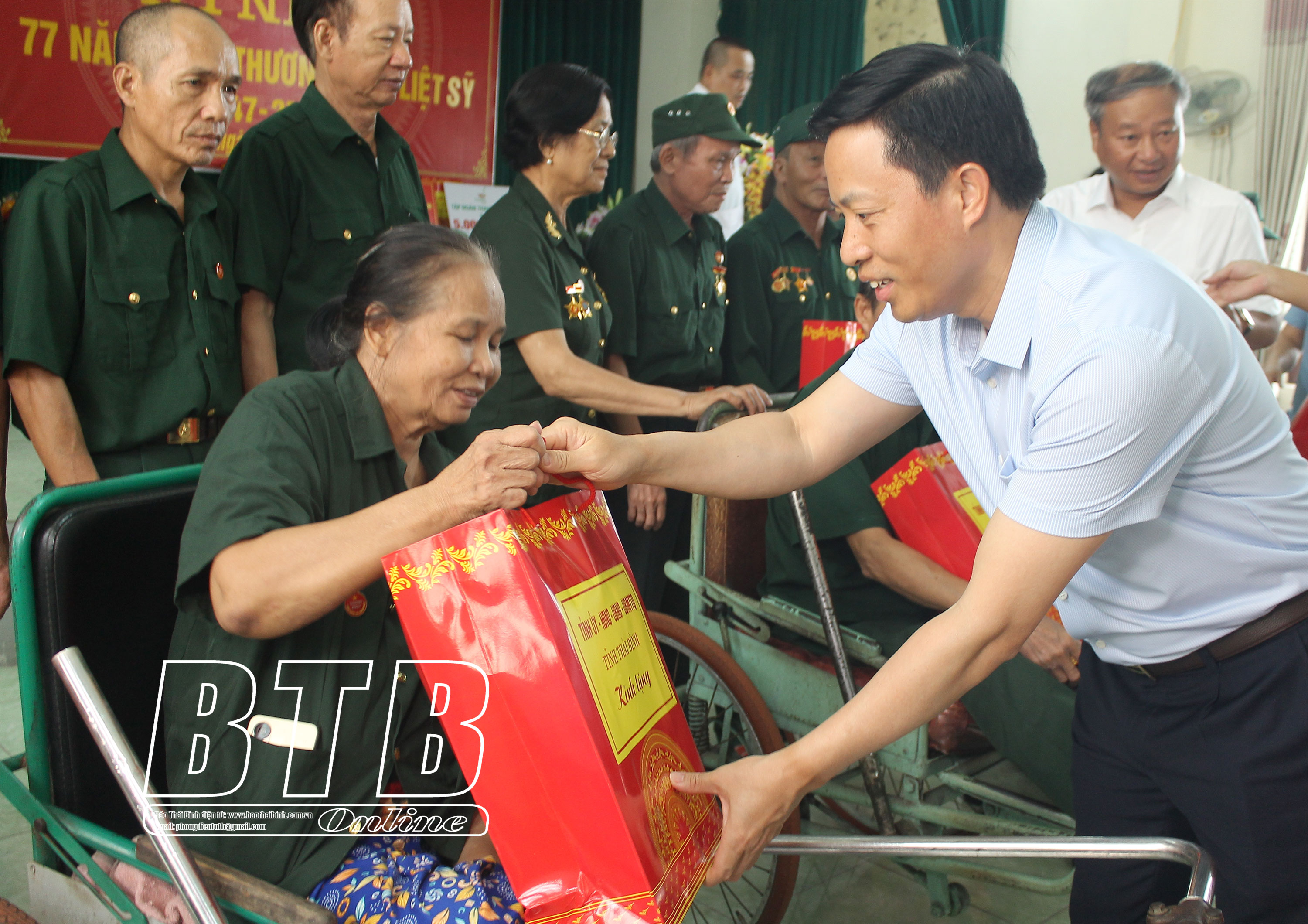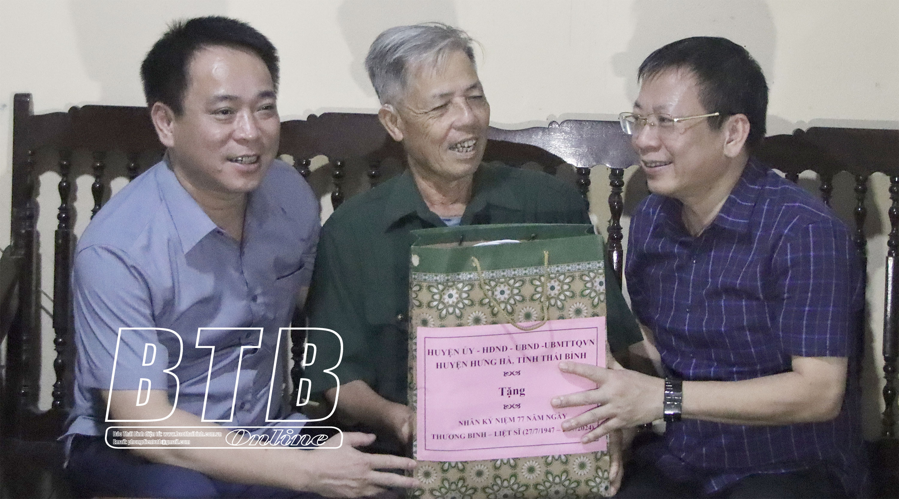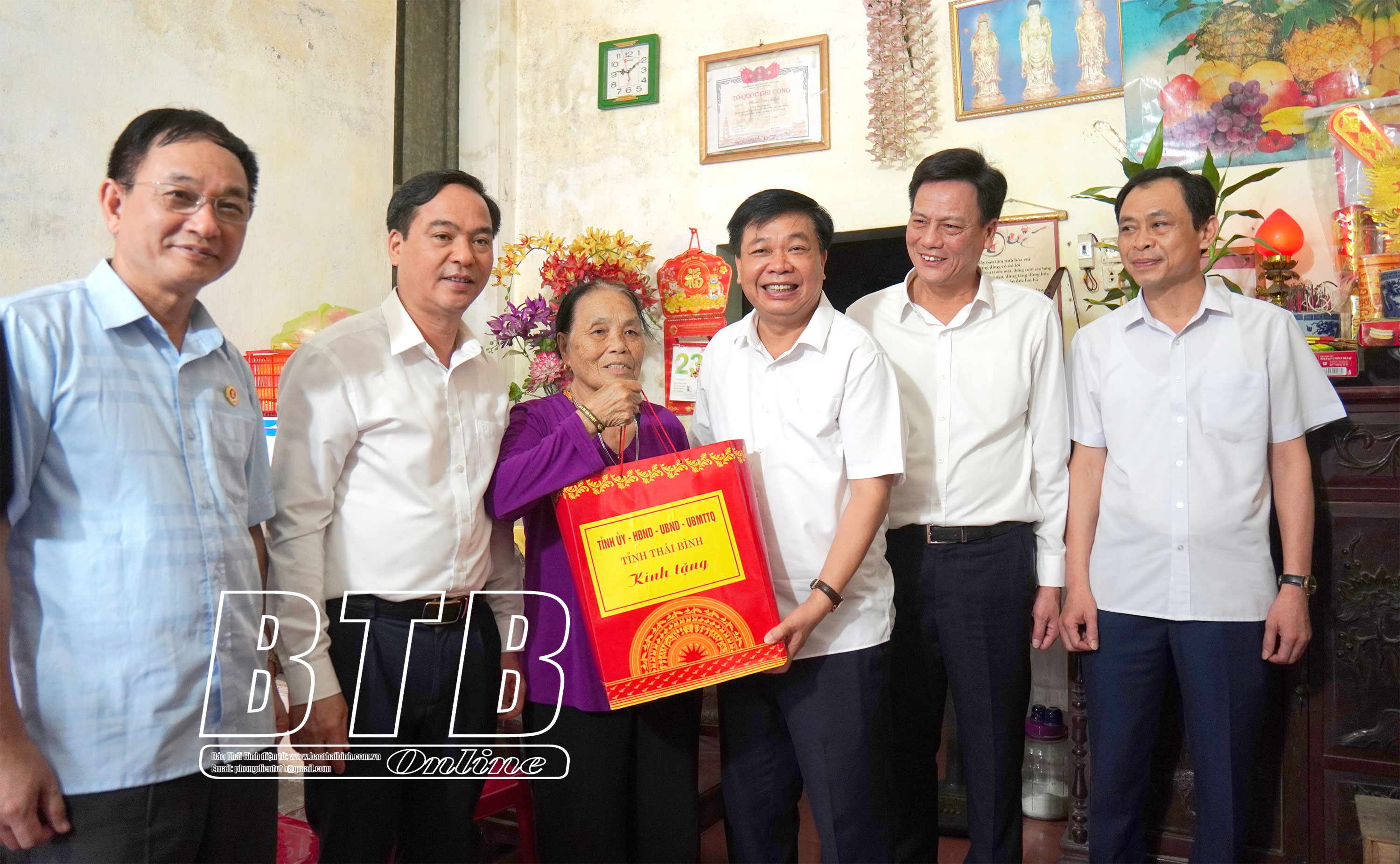Các đồng chí: Nguyễn Văn Giang, Ủy viên Ban Thường vụ, Trưởng ban Dân vận Tỉnh ủy; Phạm Văn Nghiêm, Tỉnh ủy viên, Phó Chủ tịch UBND tỉnh; lãnh đạo Tỉnh đoàn, Sở Lao động - Thương binh và Xã hội, huyện Hưng Hà đã tới thăm, tặng quà mẹ Việt Nam anh hùng Bùi Thị Lý, sinh năm 1925, có 2 con là liệt sĩ và ông Nguyễn Đăng Khoa, thương binh hạng ¼ cùng ở thị trấn Hưng Hà (Hưng Hà).