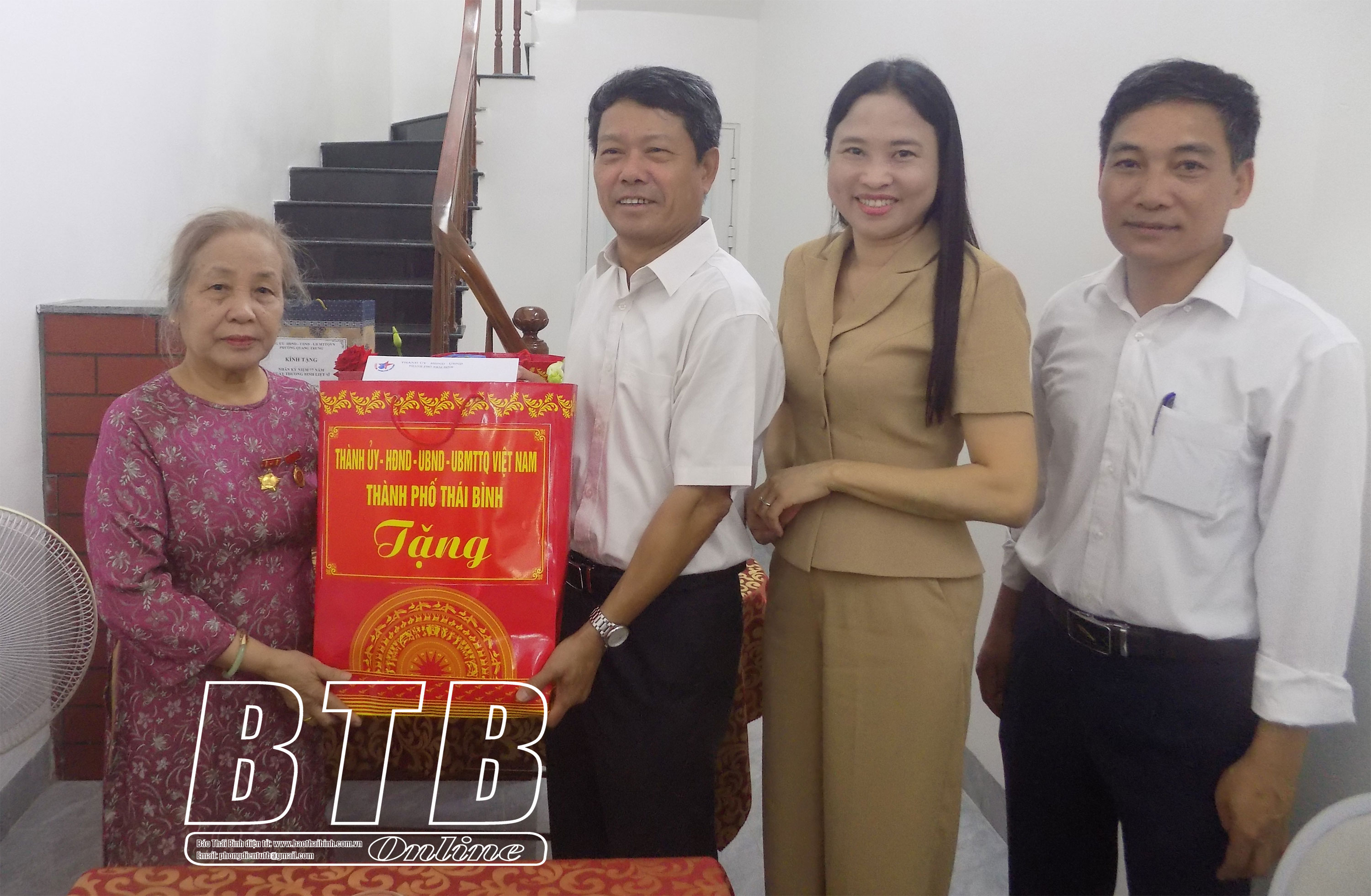Các đồng chí lãnh đạo Thành ủy, HĐND, UBND, Ủy ban MTTQ thành phố tới thăm hỏi, tặng quà mẹ Việt Nam anh hùng Phạm Thị Huệ, thôn Nghĩa Thắng, xã Đông Hòa; mẹ Việt Nam anh hùng Nguyễn Thị Sa, tổ 6, phường Tiền Phong; mẹ Việt Nam anh hùng Phan Thị Hoạt, thôn Tống Văn và mẹ Việt Nam anh hùng Nguyễn Thị Nhị, thôn Trấn Tây, xã Vũ Chính; bà Hoàng Thị Mơ, vợ liệt sĩ Lê Quang Vinh, thôn Đông Hạ, xã Vũ Phúc; bà Trần Thị Dậu, vợ liệt sĩ Đàm Xuân Đỉnh, thôn Tiên Sơn, xã Vũ Chính.