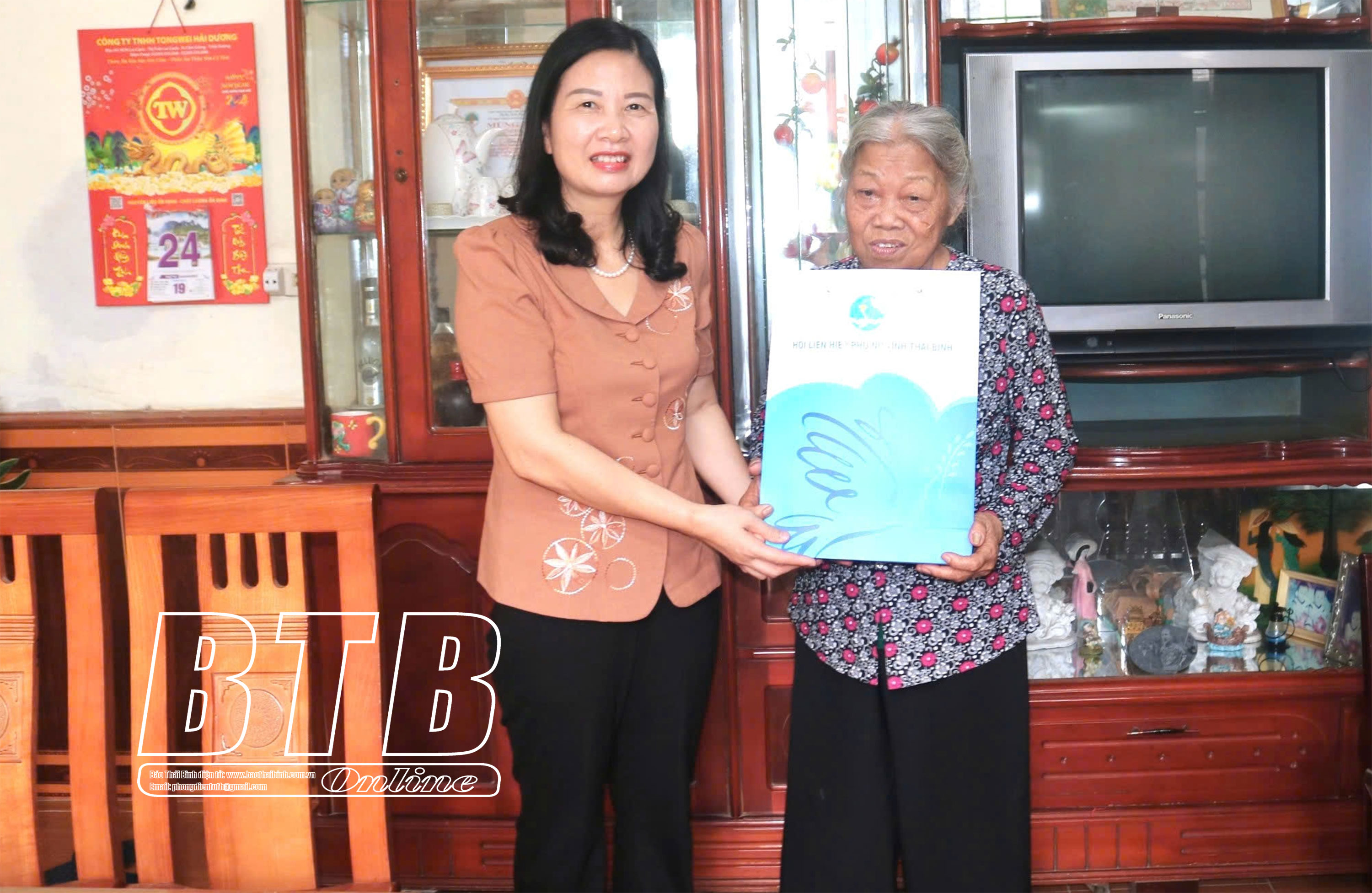 Lãnh đạo Hội Liên hiệp Phụ nữ tỉnh tặng quà bà Vũ Thị Thắm.