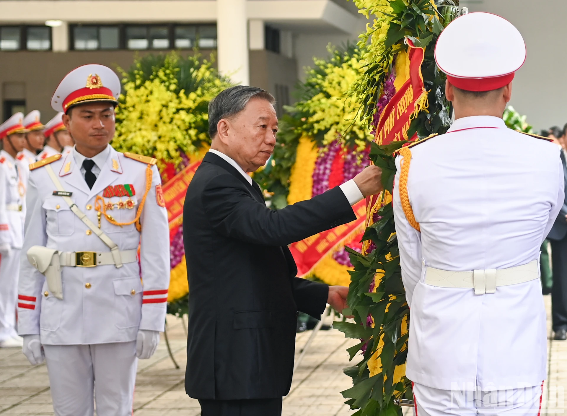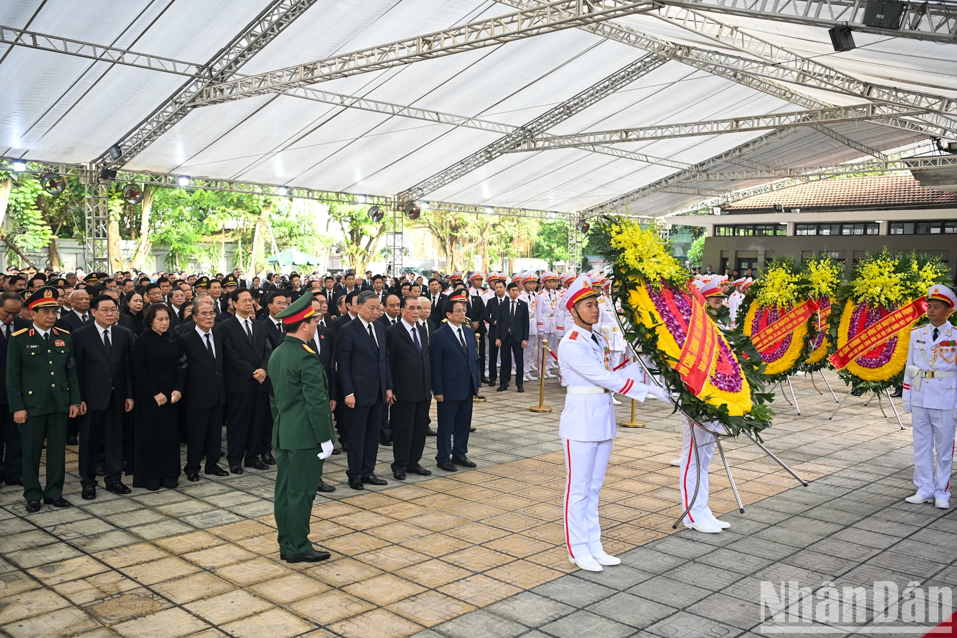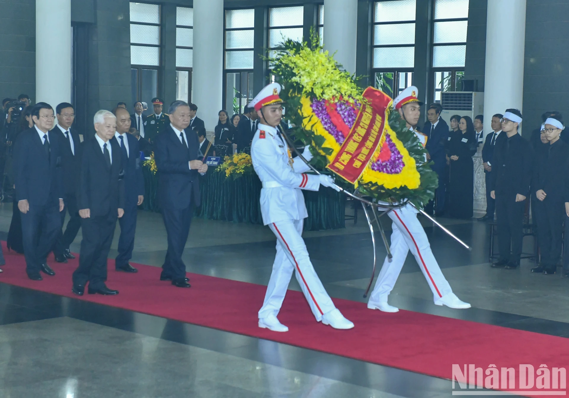 Sáng 25/7, tại Nhà tang lễ Quốc gia, các đoàn: Ban Chấp hành Trung ương Đảng, Chủ tịch nước, Chính phủ, Quốc hội và Ủy ban Trung ương Mặt trận Tổ quốc Việt Nam đã viếng Tổng Bí thư Nguyễn Phú Trọng.