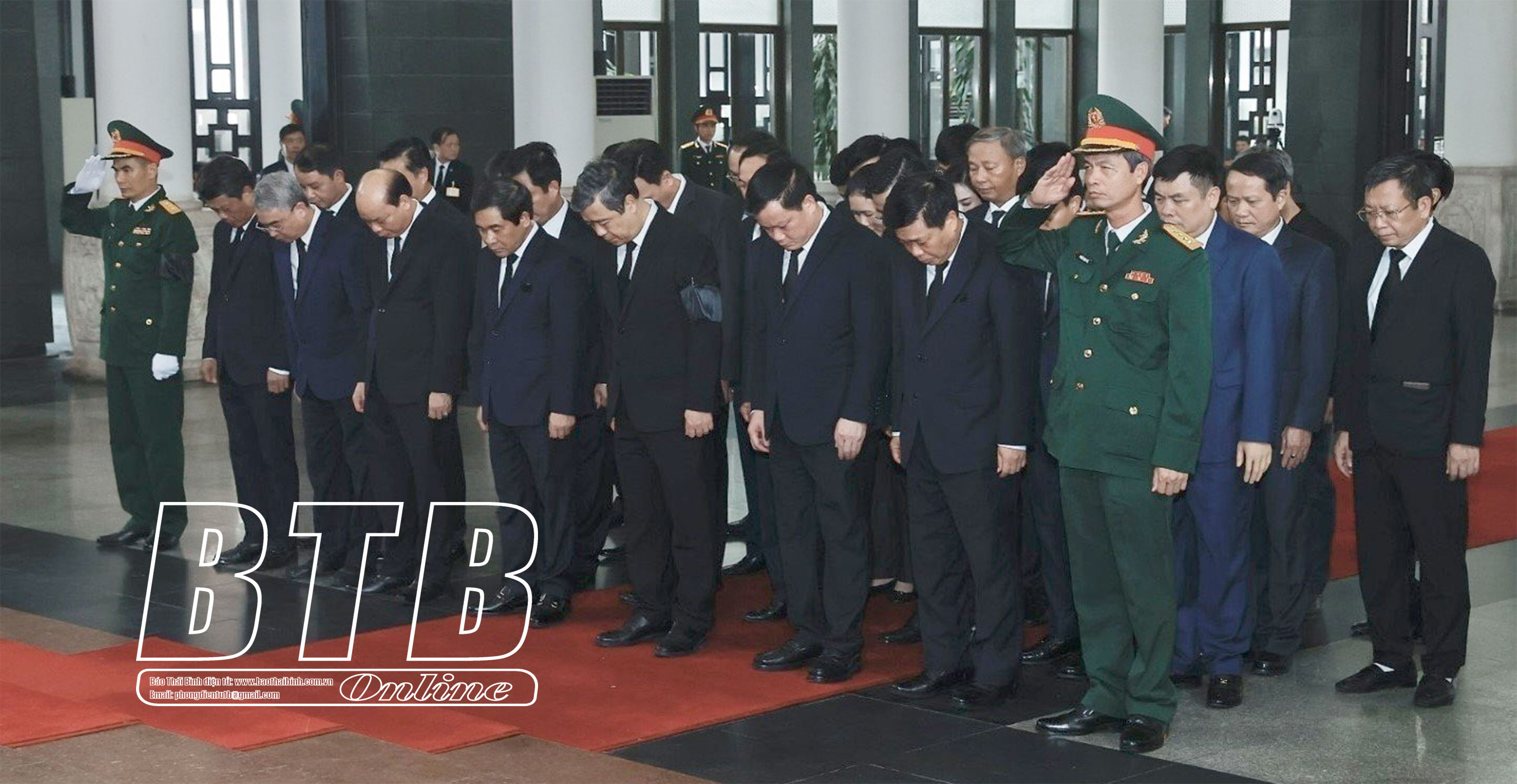 Đoàn đại biểu Tỉnh ủy, HĐND, UBND, Ủy ban MTTQ tỉnh Thái Bình viếng đồng chí Nguyễn Phú Trọng, Tổng Bí thư Ban Chấp hành Trung ương Đảng Cộng sản Việt Nam tại Nhà tang lễ quốc gia.