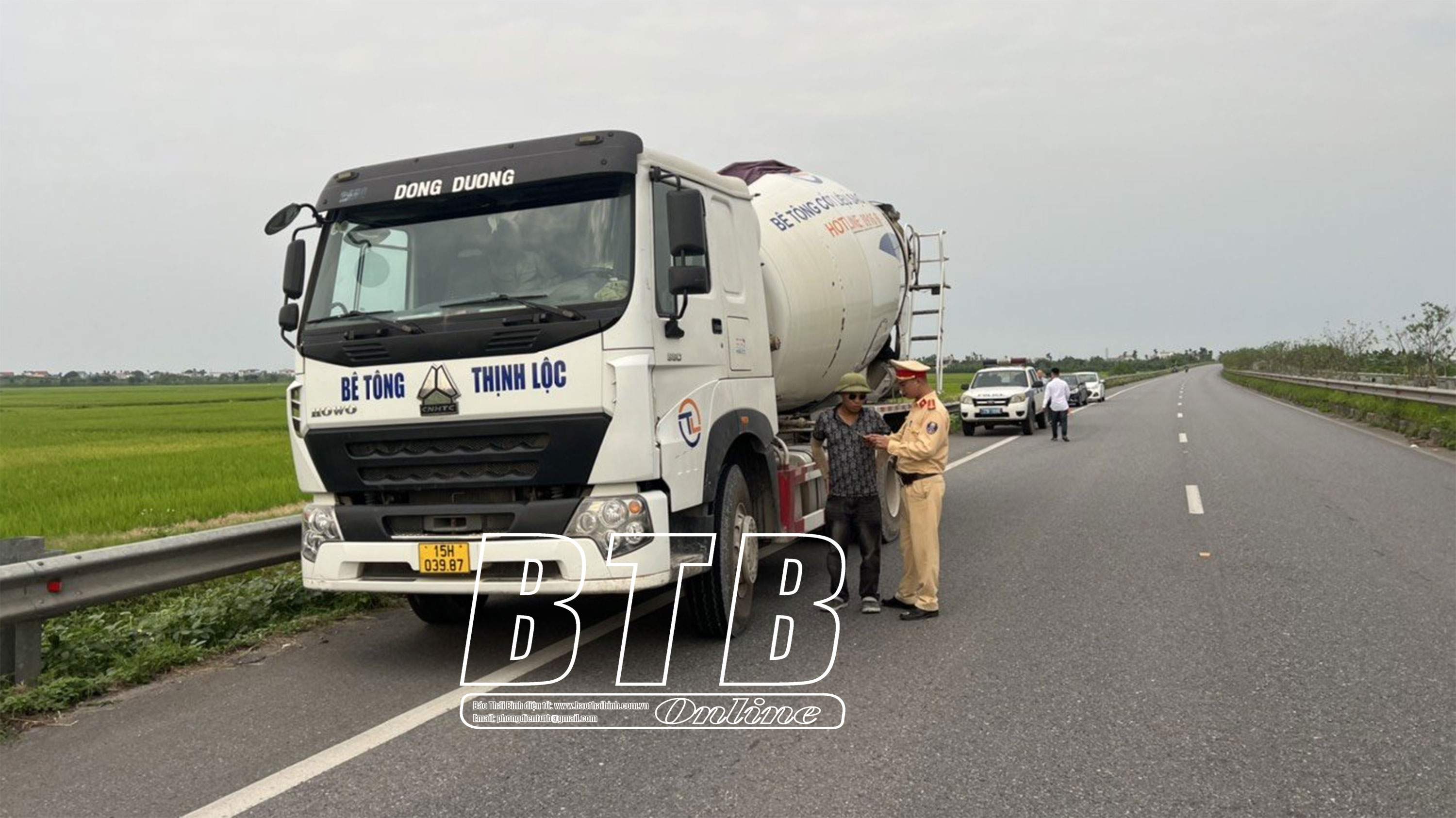Cán bộ, chiến sĩ Đội CSGT đường bộ xử lý xe bồn chở quá tải.