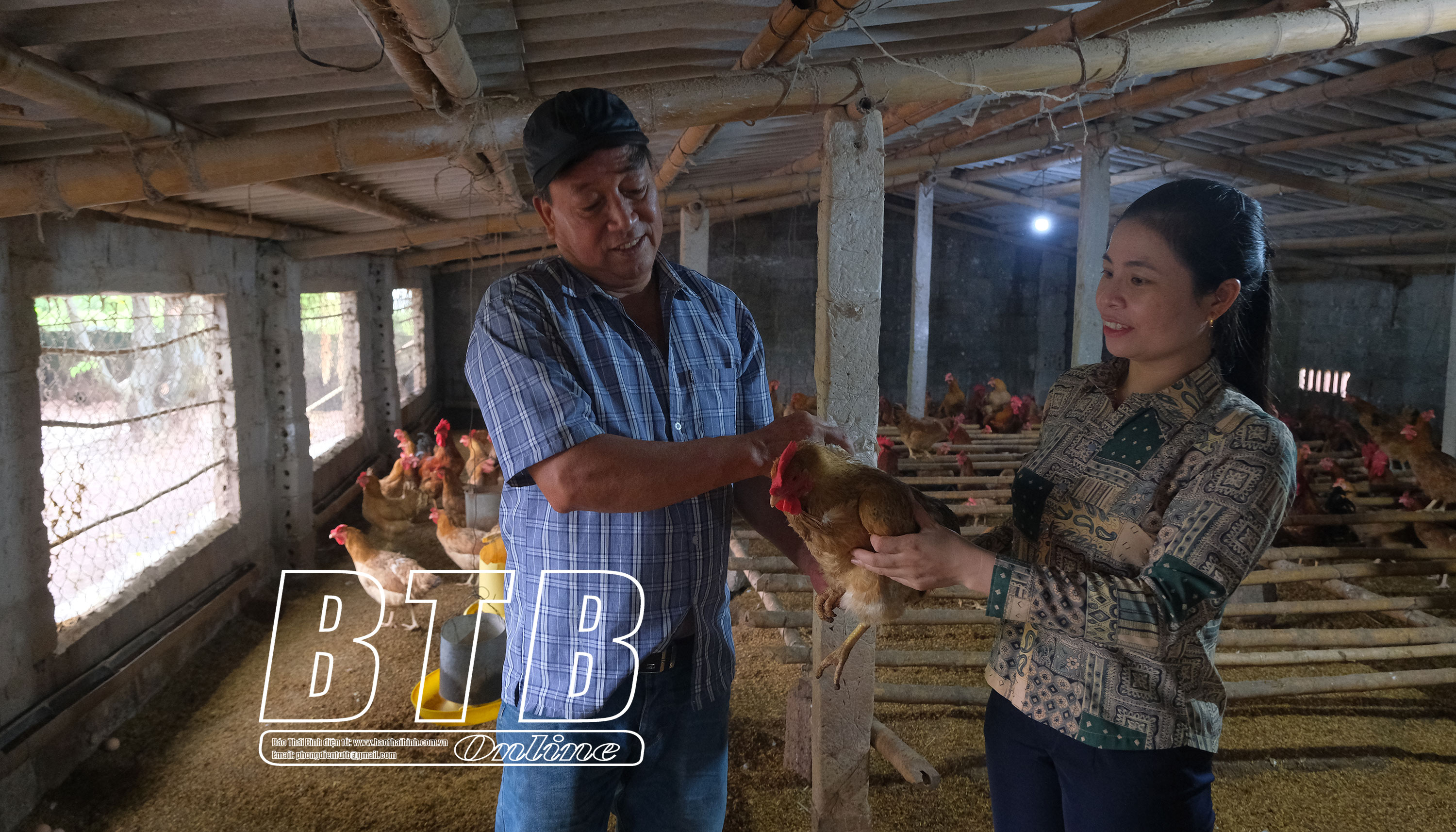Mô hình nuôi gà trên nền đệm lót sinh học của ông Đặng Văn Đính, xã Bình Định (Kiến Xương) bảo đảm vệ sinh môi trường và cho hiệu quả kinh tế cao.