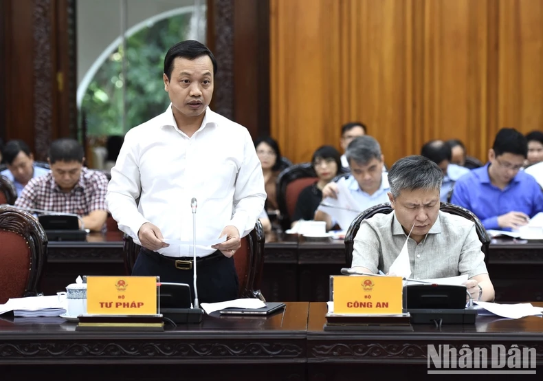 Đại diện lãnh đạo Bộ Tư pháp báo cáo Thủ tướng Chính phủ tại phiên họp. (Ảnh: TRẦN HẢI).