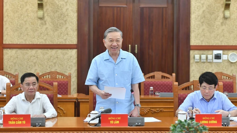 Tổng Bí thư, Chủ tịch nước Tô Lâm phát biểu chỉ đạo cuộc họp Thường trực Tiểu ban Văn kiện Đại hội XIV của Đảng. (Ảnh: Đăng Khoa).