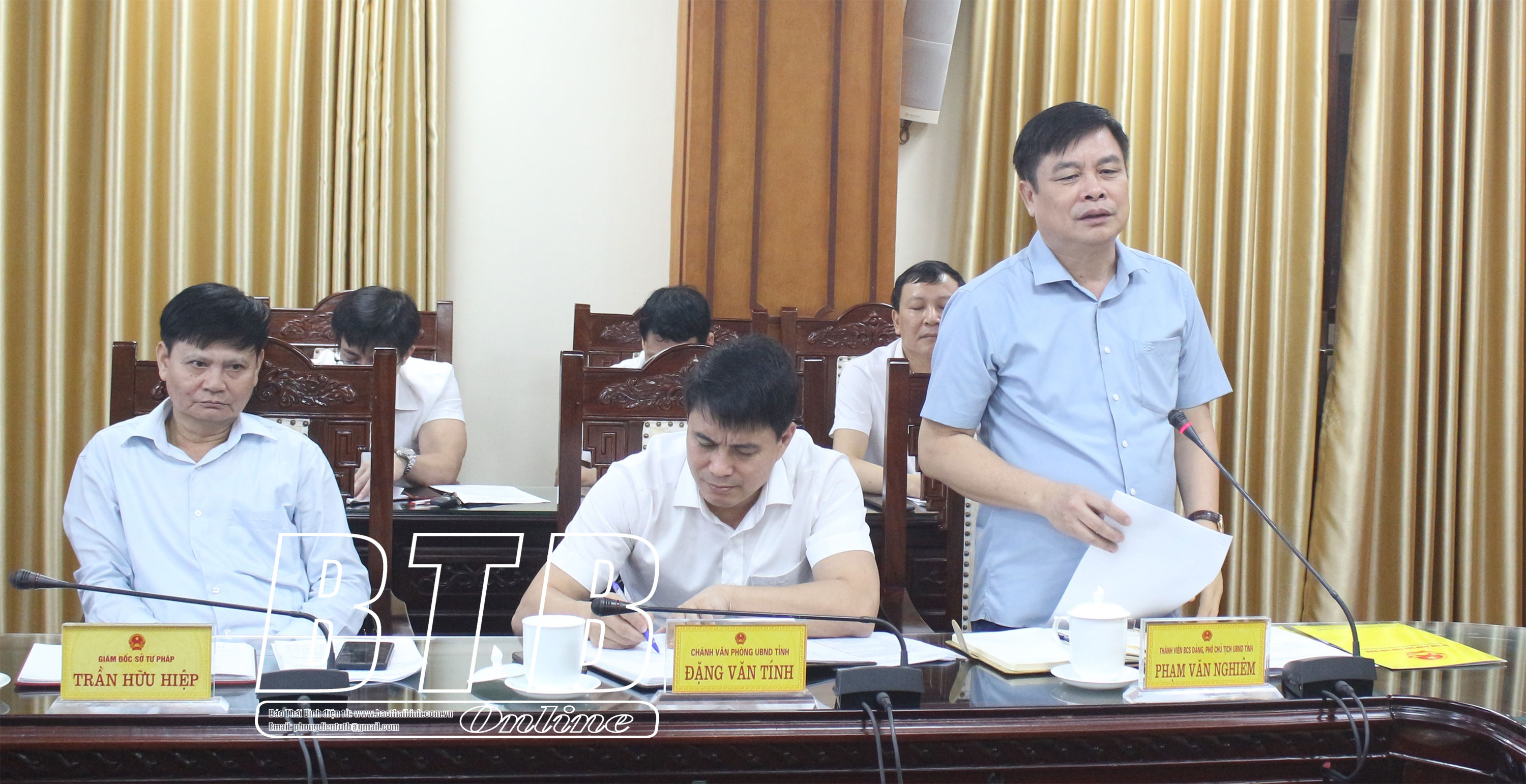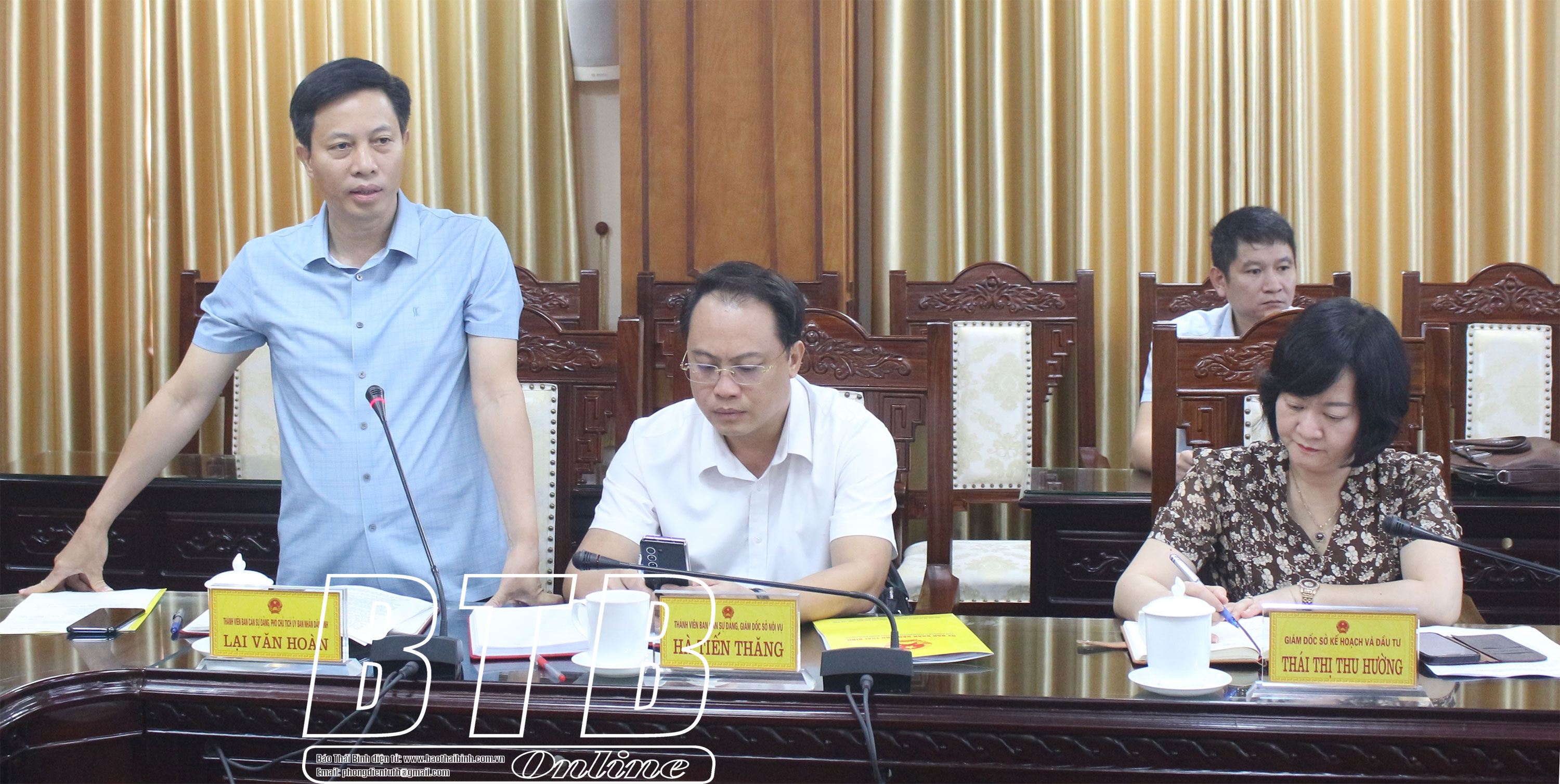 Lãnh đạo Sở Kế hoạch và Đầu tư báo cáo về việc thẩm định hồ sơ đề nghị chấp thuận nhà đầu tư thực hiện dự án phát triển nhà ở khu đô thị mới Kiến Giang, thành phố Thái Bình; lãnh đạo Sở Văn hóa, Thể thao và Du lịch báo cáo tiếp thu, điều chỉnh quy hoạch bảo quản, tu bổ, phục hồi di tích lịch sử quốc gia đặc biệt Khu lăng mộ và đền thờ các vị vua triều Trần, huyện Hưng Hà theo kết luận của Ban Thường vụ Tỉnh ủy và tờ trình về việc đề nghị thẩm định quy hoạch bảo quản, tu bổ, phục hồi di tích lịch sử quốc gia đặc biệt Khu lăng mộ và đền thờ các vị vua triều Trần, huyện Hưng Hà; lãnh đạo Sở Y tế báo cáo đề án phát triển kỹ thuật cao, chuyên sâu nâng cao chất lượng dịch vụ y tế giai đoạn 2024 - 2028.