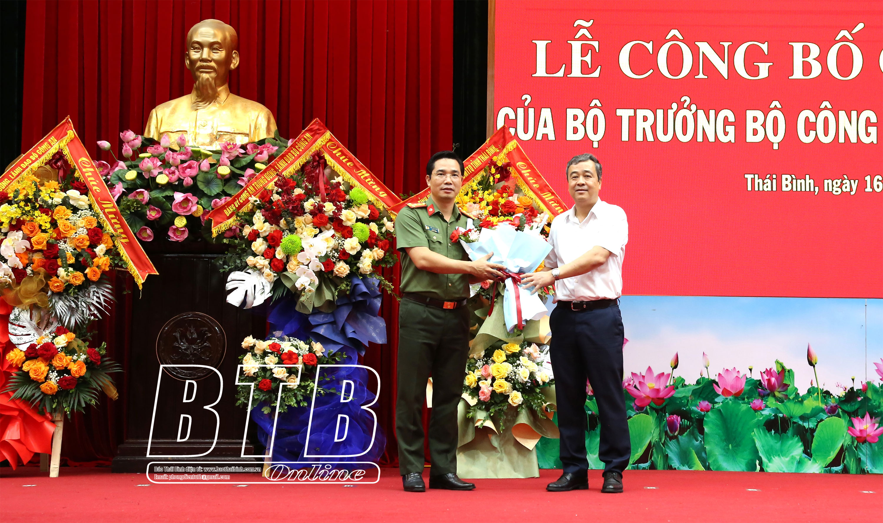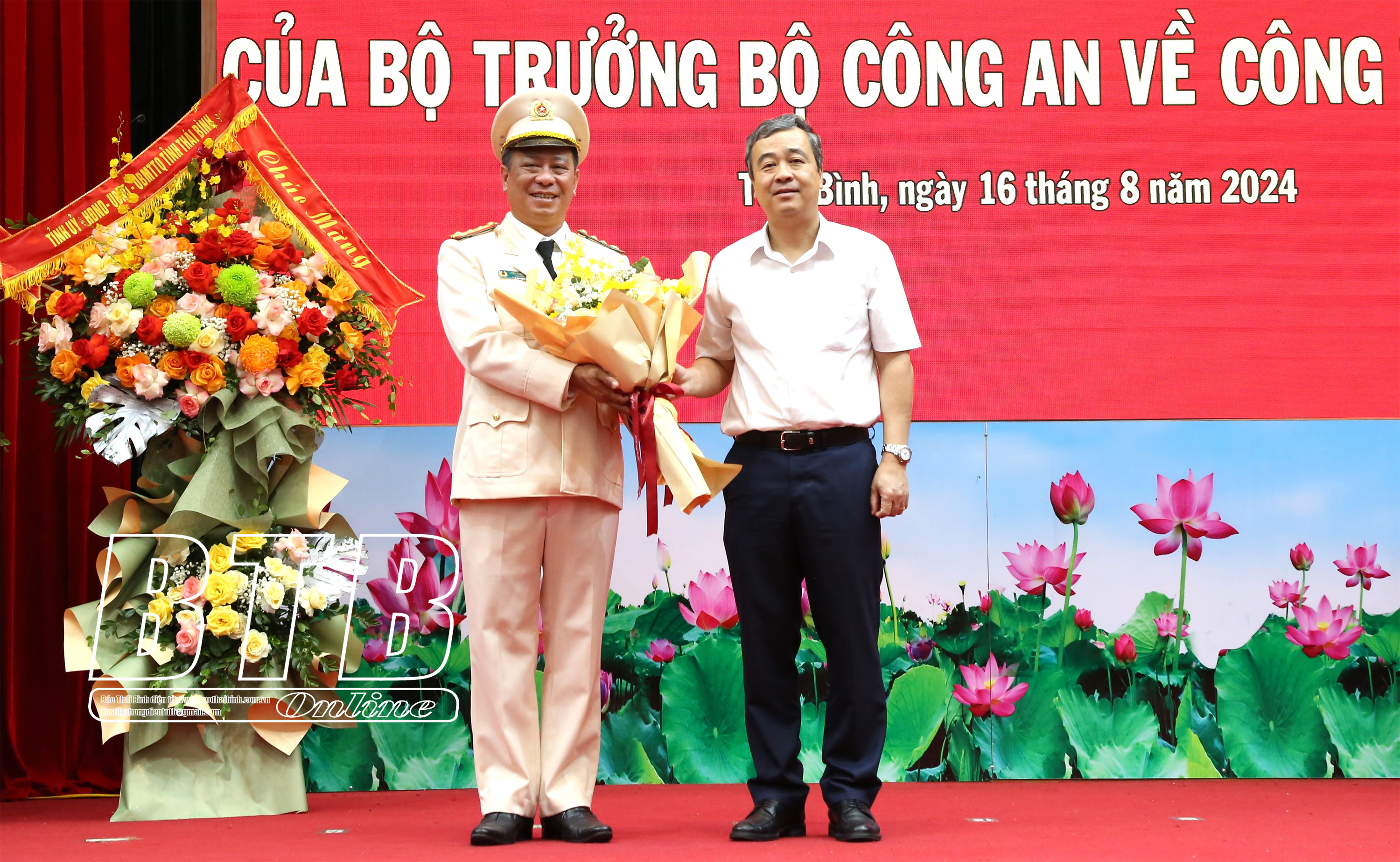 Đồng chí Ngô Đông Hải, Ủy viên Ban Chấp hành Trung ương Đảng, Bí thư Tỉnh ủy tặng hoa chúc mừng Đại tá Trần Xuân Ánh, Giám đốc Công an tỉnh Thái Bình.Đồng chí Ngô Đông Hải, Ủy viên Ban Chấp hành Trung ương Đảng, Bí thư Tỉnh ủy tặng hoa chúc mừng Đại tá Trần Văn Phúc nhận nhiệm vụ mới.