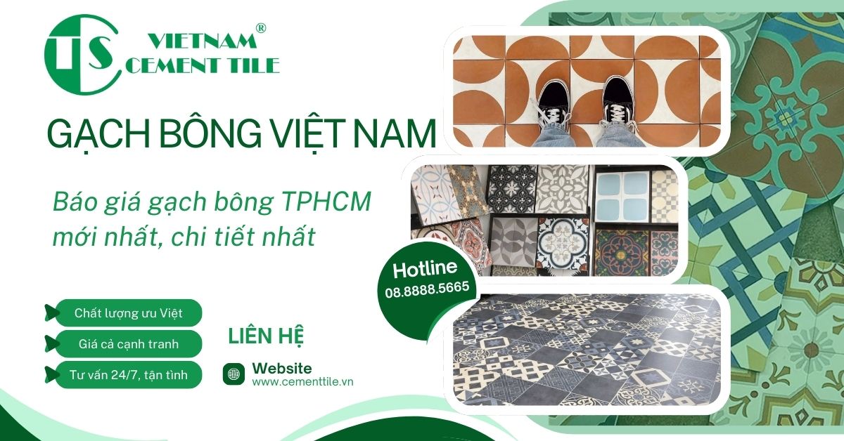 Trên đây là những thông tin về báo giá gạch bông TPHCM mà bạn đọc có thể tham khảo. Bạn có thể truy cập https://cementtile.vn/vi/ để tìm hiểu thêm nhiều sản phẩm mới nhất tại showroom Gạch Bông Việt Nam. Nếu cần tư vấn hỗ trợ, bạn vui lòng liên hệ Hotline 08.8888.5665 nhé!
