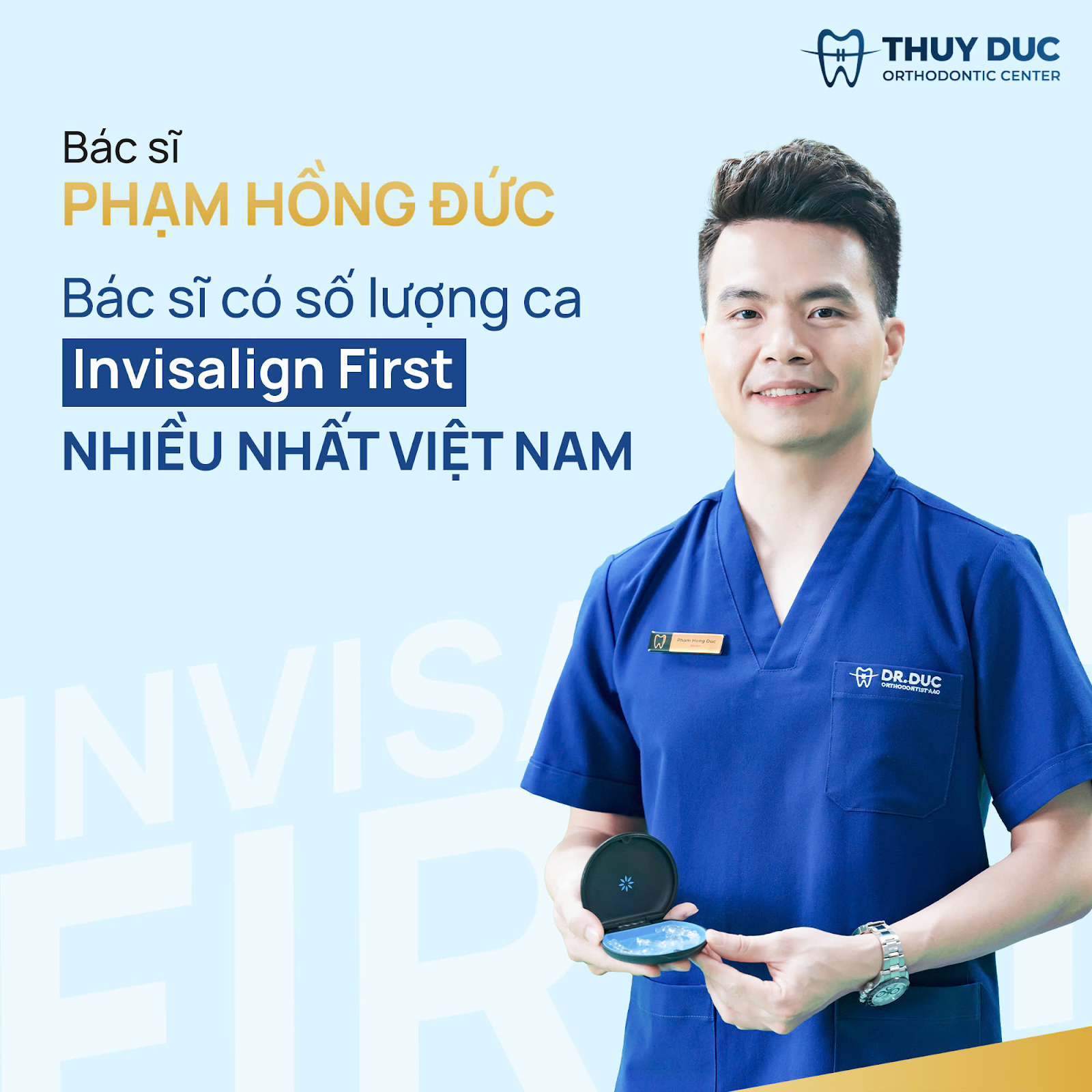 Hiện tại, bác sĩ Phạm Hồng Đức đang giữ vị trí Giám đốc Chuyên môn phụ trách Chỉnh nha tại Nha khoa Thúy Đức, trực tiếp theo dõi và đảm bảo chất lượng điều trị cho từng khách hàng. Với danh hiệu Red Diamond Invisalign, khách hàng có thể hoàn toàn yên tâm khi lựa chọn bác sĩ Đức và Nha khoa Thúy Đức để chăm sóc, hoàn thiện nụ cười của mình.