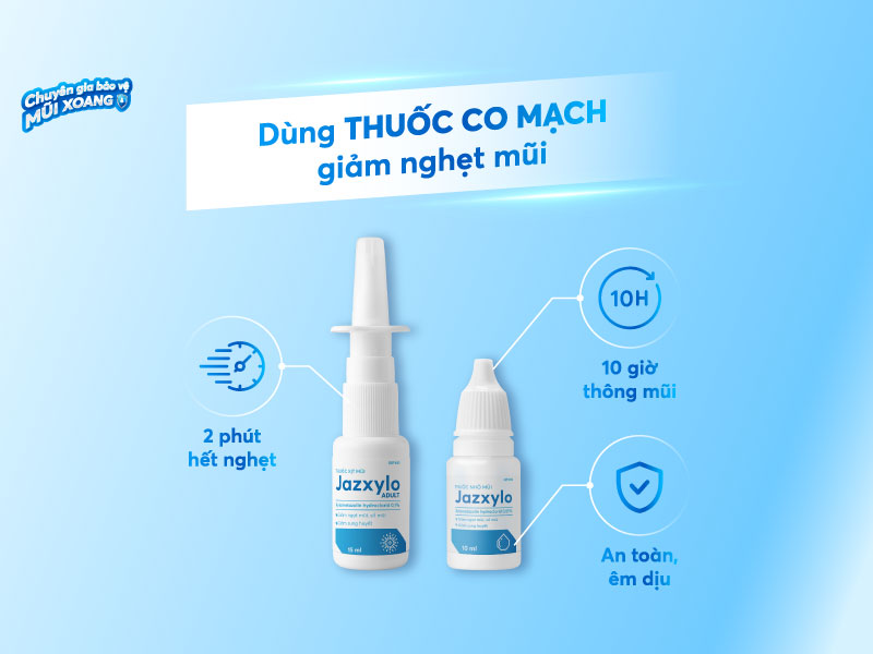 Thuốc giảm nghẹt mũi Jazxylo chứa thành phần chính là Xylometazolin giúp giúp làm thông thoáng mũi, giảm tình trạng nghẹt mũi do viêm chỉ sau 2-5 phút, hiệu quả kéo dài lên đến 10 giờ. Vì vậy, hạn chế số lần sử dụng cũng như đem lại sự an toàn, giảm tác dụng phụ. là sản phẩm nhỏ mũi giúp giảm nhanh triệu chứng nghẹt mũi nhờ vào thành phần co mạch thế hệ mới. Dạng nhỏ mũi của Jazxylo được Bộ y tế cấp phép sử dụng cho TRẺ TỪ 3 THÁNG TUỔI.