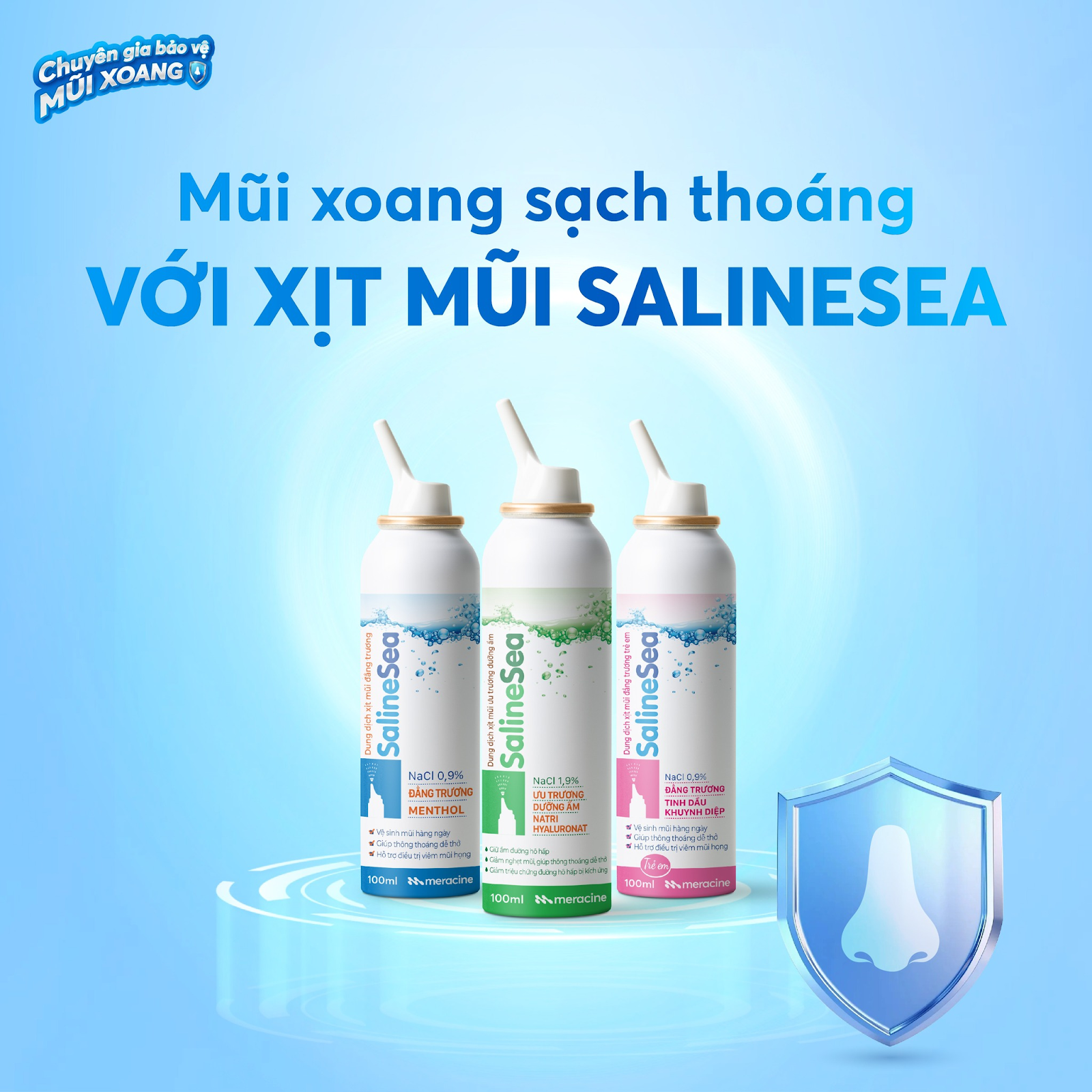• Dung dịch xịt mũi SalineSea ưu trương dưỡng ẩm 1,9%: Hiệu quả vượt trội trong làm loãng dịch nhầy, giảm sưng viêm, giúp mũi nhanh chóng thông thoáng.