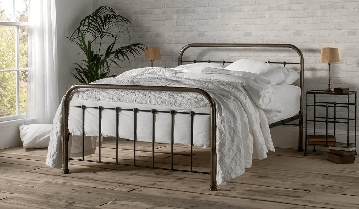 Giường sắt được làm bằng các loại sắt hộp với ưu điểm chính là cứng cáp, nhẹ, dễ gia công và giá thành rẻ. Do vậy, độ phổ biến của giường sắt trên thị trường cao hơn hẳn các loại giường kim loại khác. Sản phẩm giường sắt cũng không bị giới hạn bởi thiết kế đơn điệu, bình dân như trước đây mà ngày càng có nhiều thiết kế độc đáo, sang chảnh.