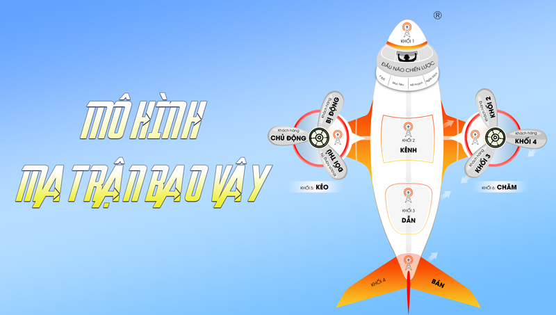 Mô hình Ma Trận Bao Vây là phương pháp marketing toàn diện, được sáng tạo bởi Chuyên Gia Marketing Võ Tuấn Hải, với mục tiêu hỗ trợ các doanh nghiệp xây dựng và thực thi chiến lược marketing tổng thể một cách có hệ thống, hiệu quả và bền vững. Lấy cảm hứng từ hình tượng chiếc máy bay, mô hình chia hoạt động marketing thành 6 khối chức năng gồm thân máy bay (Khối 1 - Khối 4), cánh trái (Khối 5), cánh phải (Khối 6).