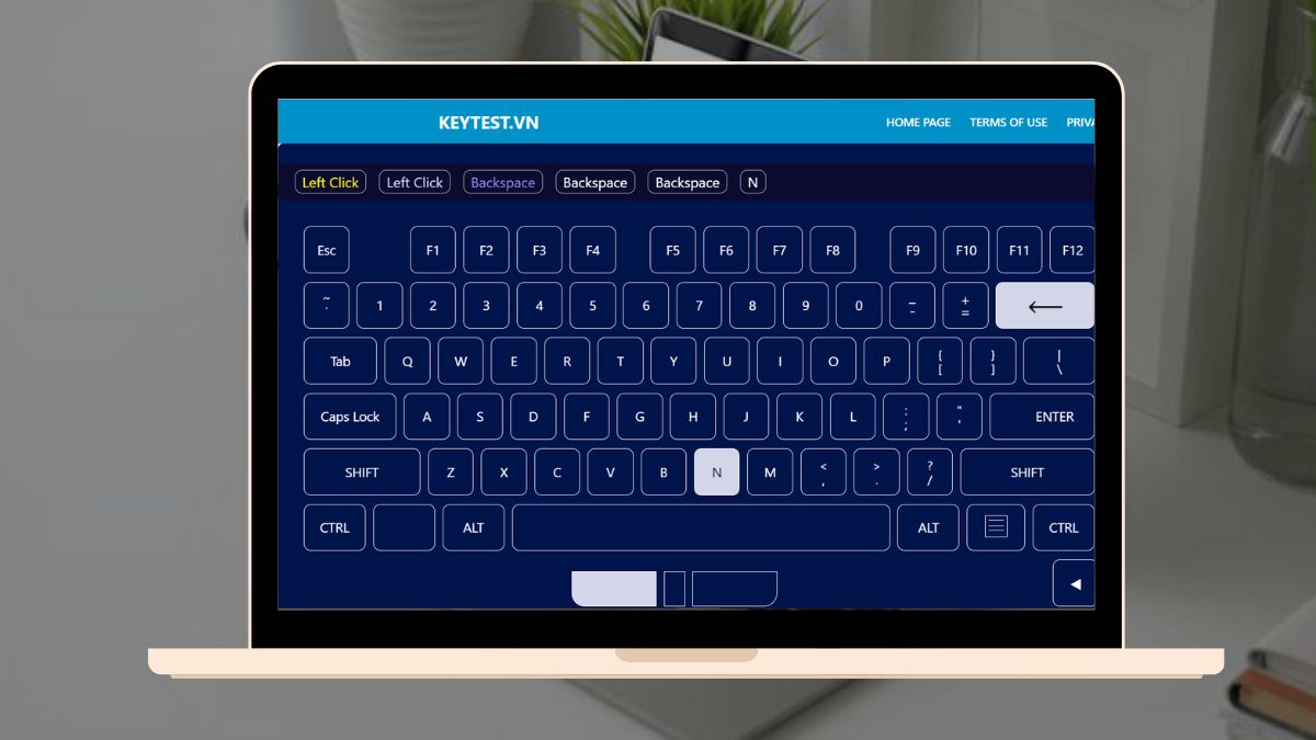Bước 3: Xem kết quả: Mỗi khi bạn nhấn một phím, công cụ sẽ hiển thị trạng thái của phím đó trên màn hình. Phím hoạt động tốt sẽ được đánh dấu, còn phím lỗi sẽ được báo hiệu rõ ràng.