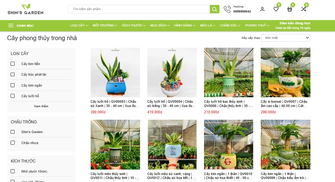 Với phương châm "Sống xanh – Sống chất lượng", Shin's Garden cam kết mang đến cho khách hàng những sản phẩm cây cảnh chất lượng cao, giúp tạo ra không gian sống xanh mát và thư thái. Tại Shin's Garden, bạn có thể tìm thấy một danh mục sản phẩm đa dạng, đáp ứng mọi nhu cầu và sở thích: