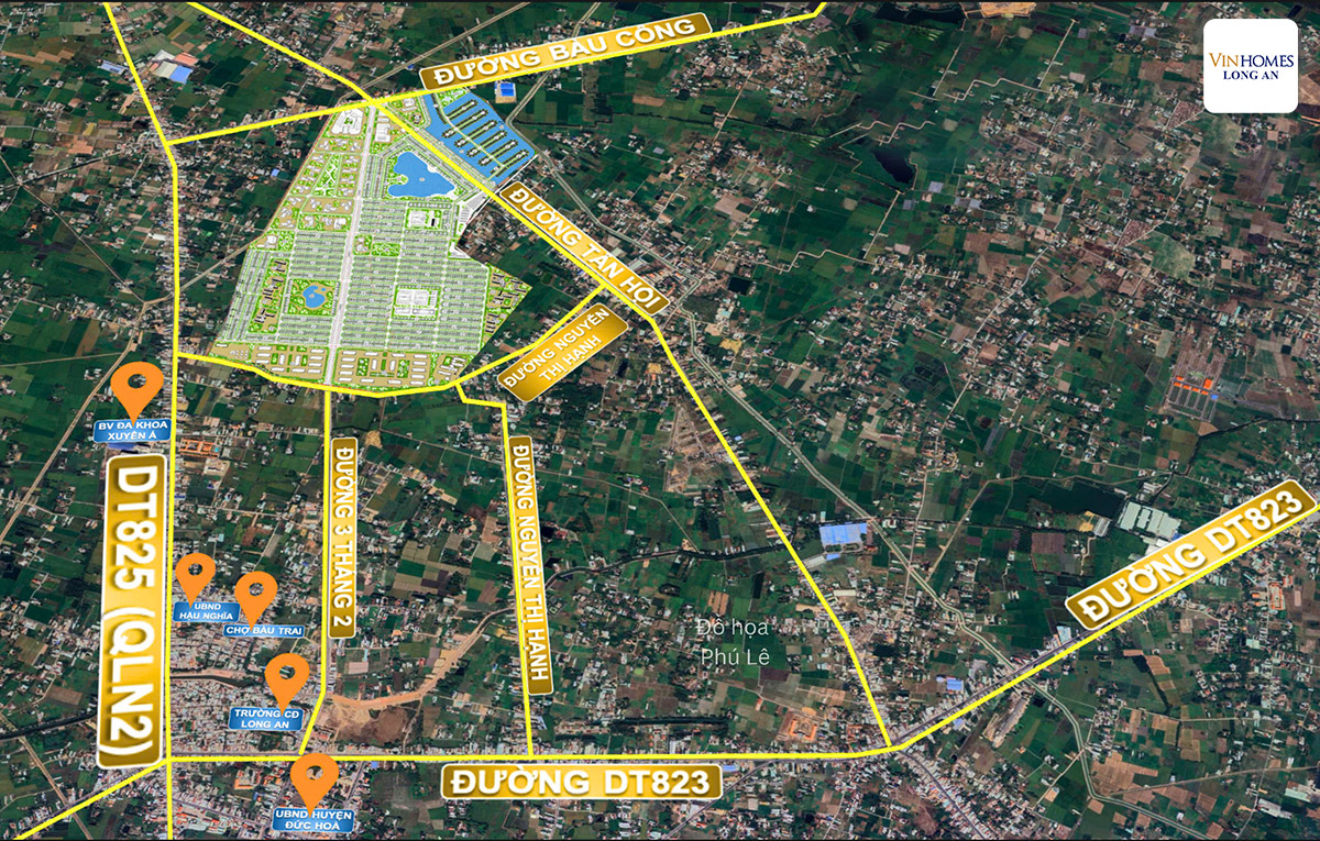 Nằm ngay mặt tiền Quốc lộ N2, thuộc trung tâm thị trấn Hậu Nghĩa, huyện Đức Hòa – một trong những đô thị vệ tinh trọng điểm của tỉnh Long An, Vinhomes Long An kết nối nhanh về TP.HCM chỉ 30 phút thông qua QL22, TL8 và cao tốc TP.HCM – Trung Lương.