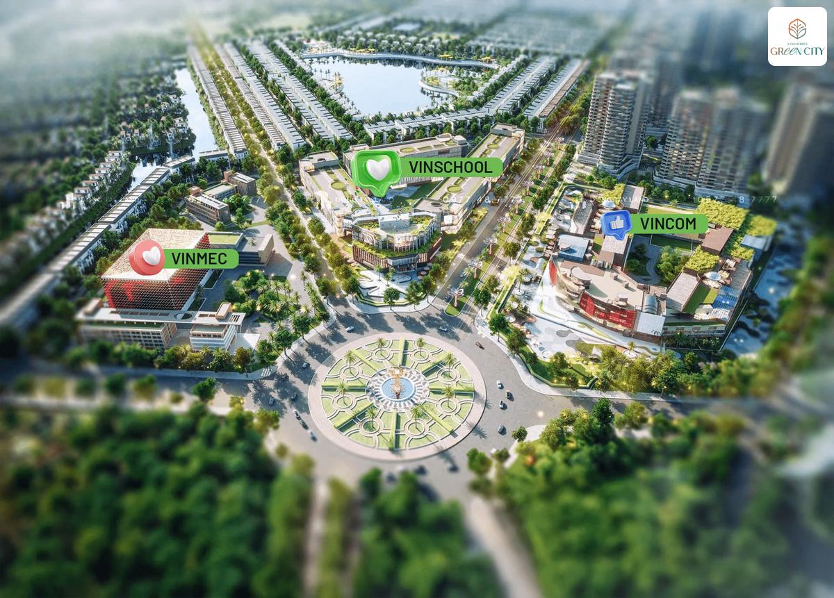 Cuối cùng, nhưng không kém phần quan trọng: nhà phố Vinhomes Green City nằm trong một hệ sinh thái sống toàn diện, nơi cư dân được thụ hưởng đầy đủ các tiện ích: từ giáo dục (Vinschool), y tế (Vinmec), thương mại (Vincom) đến cảnh quan sống xanh (công viên trung tâm, hồ sinh thái).
