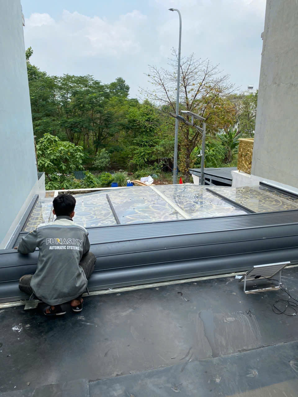 Mái Nhôm Cuốn Funas Smart Life: Giải Pháp Che Nắng Thông Minh Trên Mái Kính