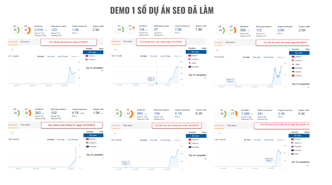 SEO Audit, On-Page Optimization, liên kết nội bộ, và triển khai schema markup.