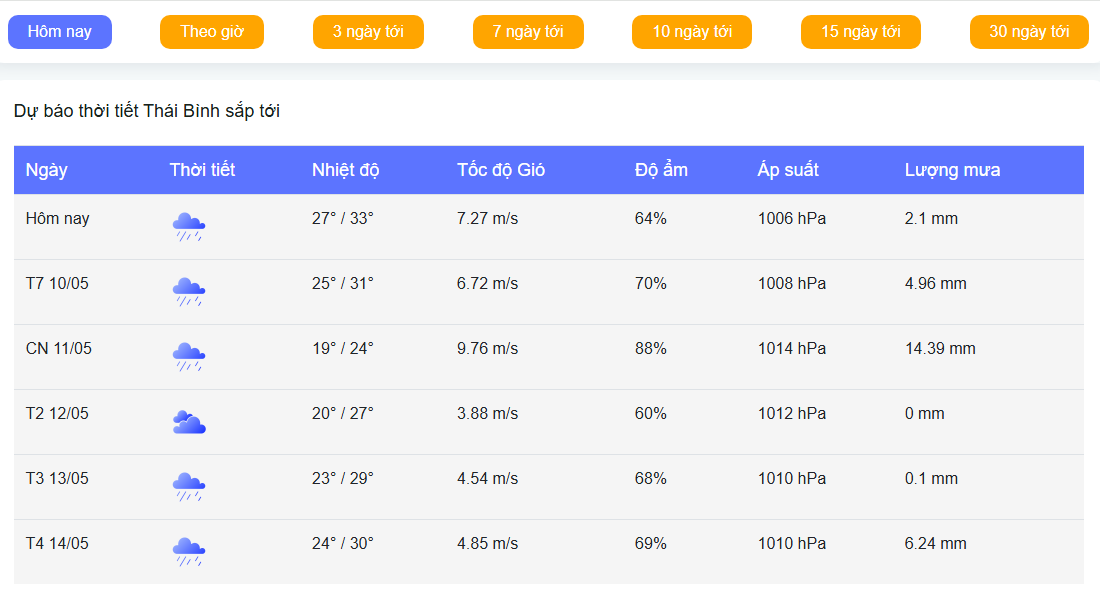 Hướng dẫn cách xem thời tiết Thái Bình tại website Dự Báo Thời Tiết