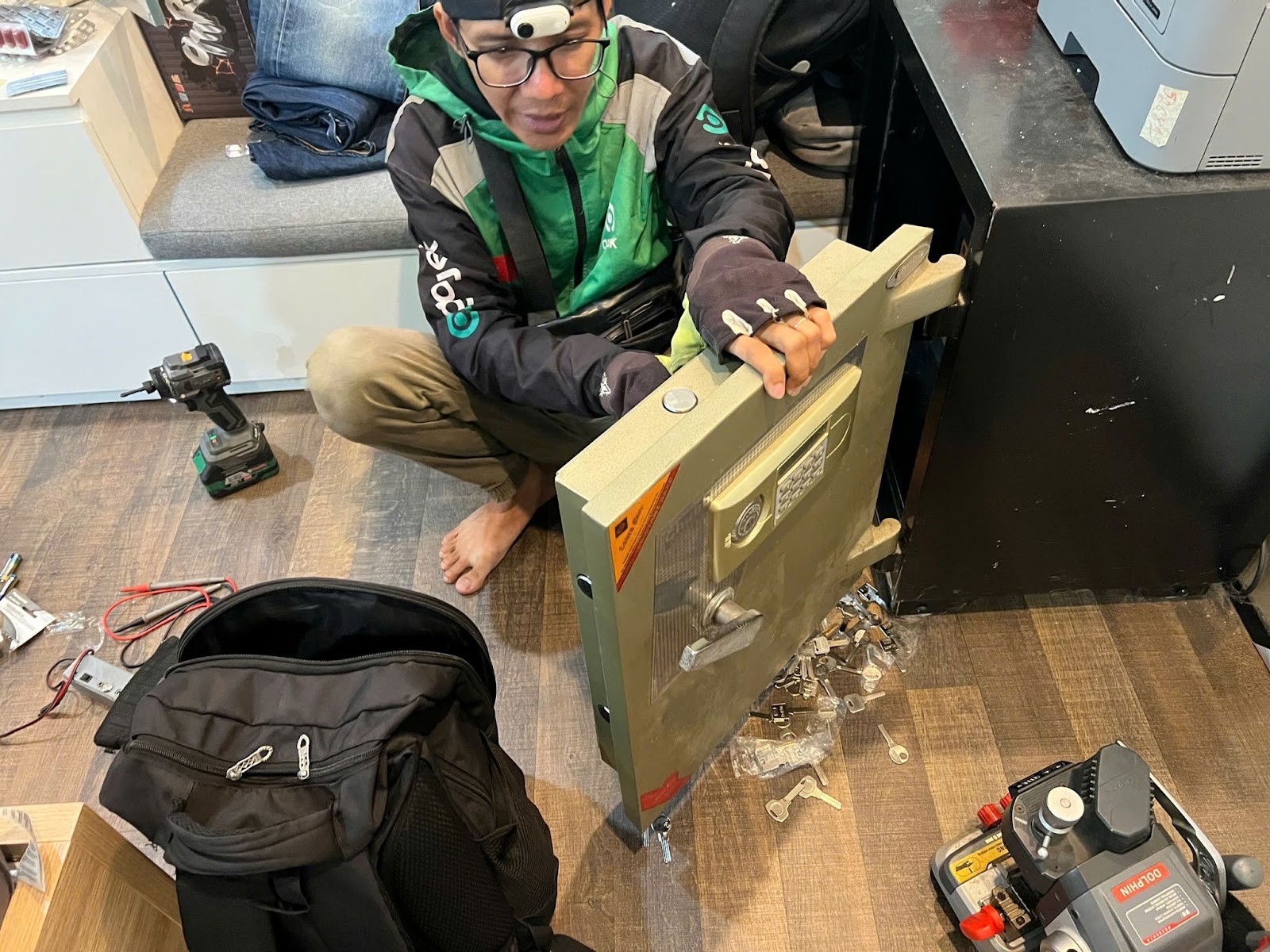 Toàn bộ quá trình thao tác được công khai, khách hàng có thể giám sát trực tiếp. Dụng cụ sử dụng là thiết bị chuyên dụng, phù hợp với từng dòng xe, dòng két. Điều này giúp quá trình mở hoặc sửa khóa diễn ra an toàn, không phá thiết bị, không ảnh hưởng đến giá trị sử dụng hoặc dữ liệu bên trong.